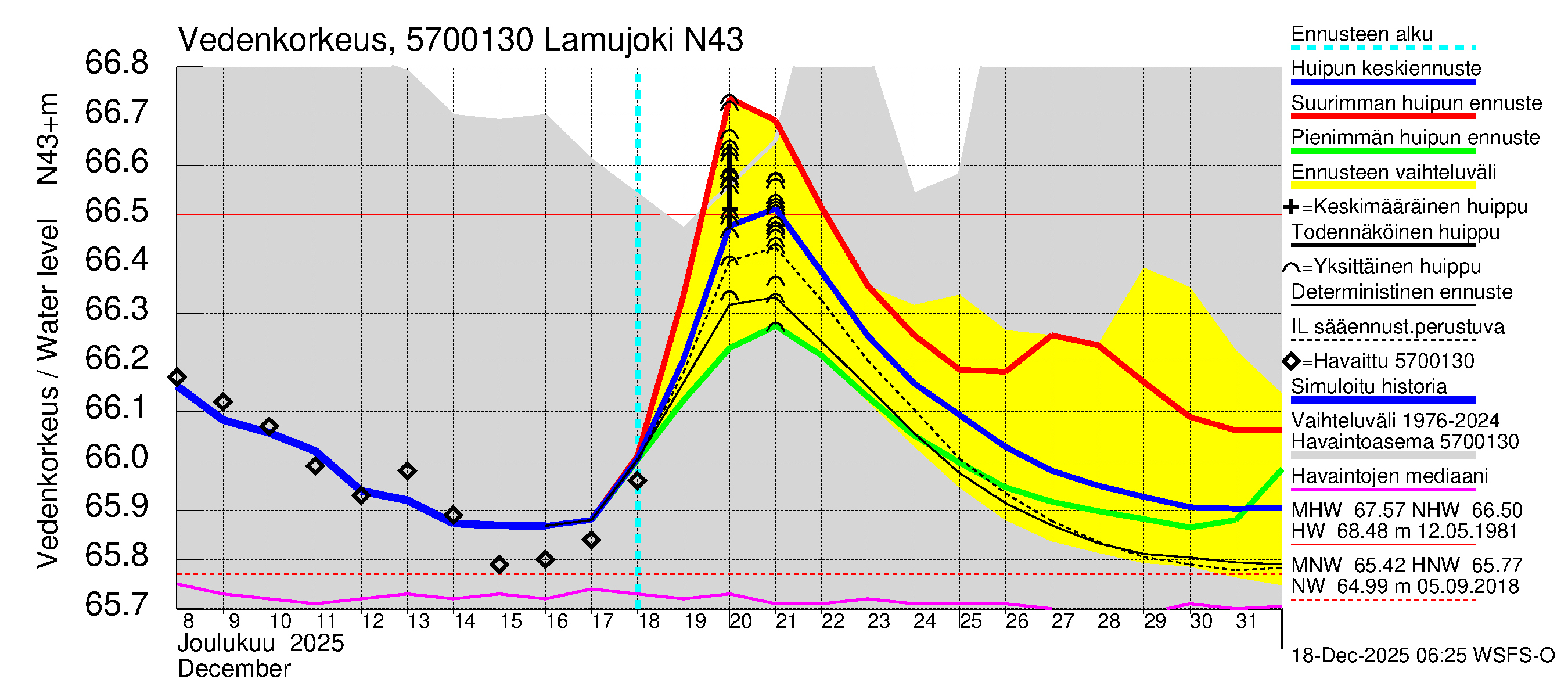Siikajoen vesistöalue - Lamujoki: Vedenkorkeus - huippujen keski- ja ääriennusteet