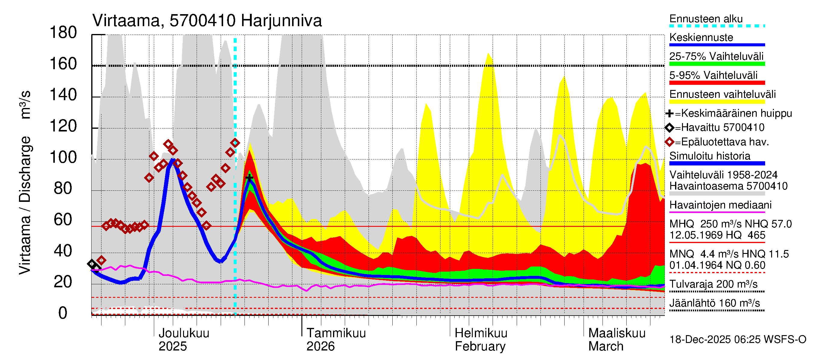 Siikajoen vesistöalue - Harjunniva: Virtaama / juoksutus - huippujen keski- ja ääriennusteet