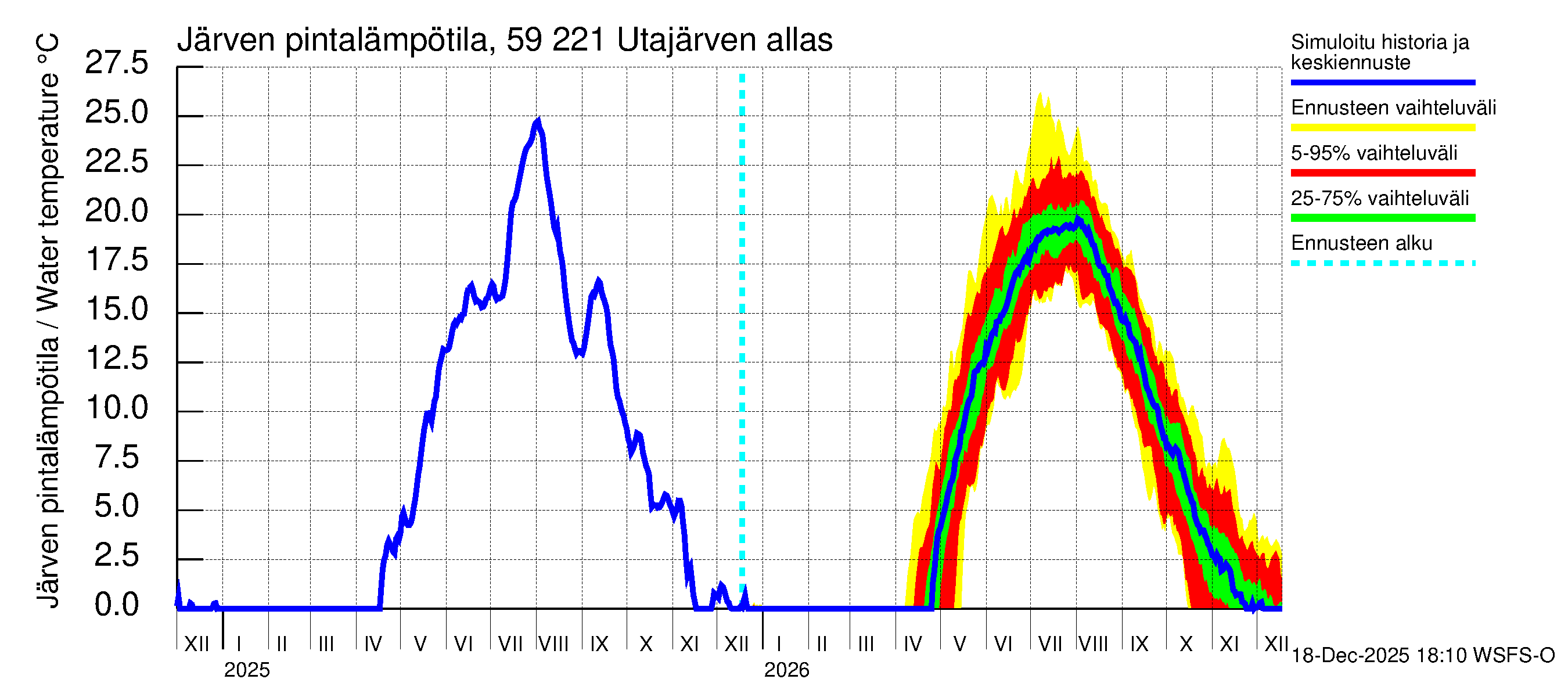 Oulujoen vesistöalue - Utajärven allas: Järven pintalämpötila
