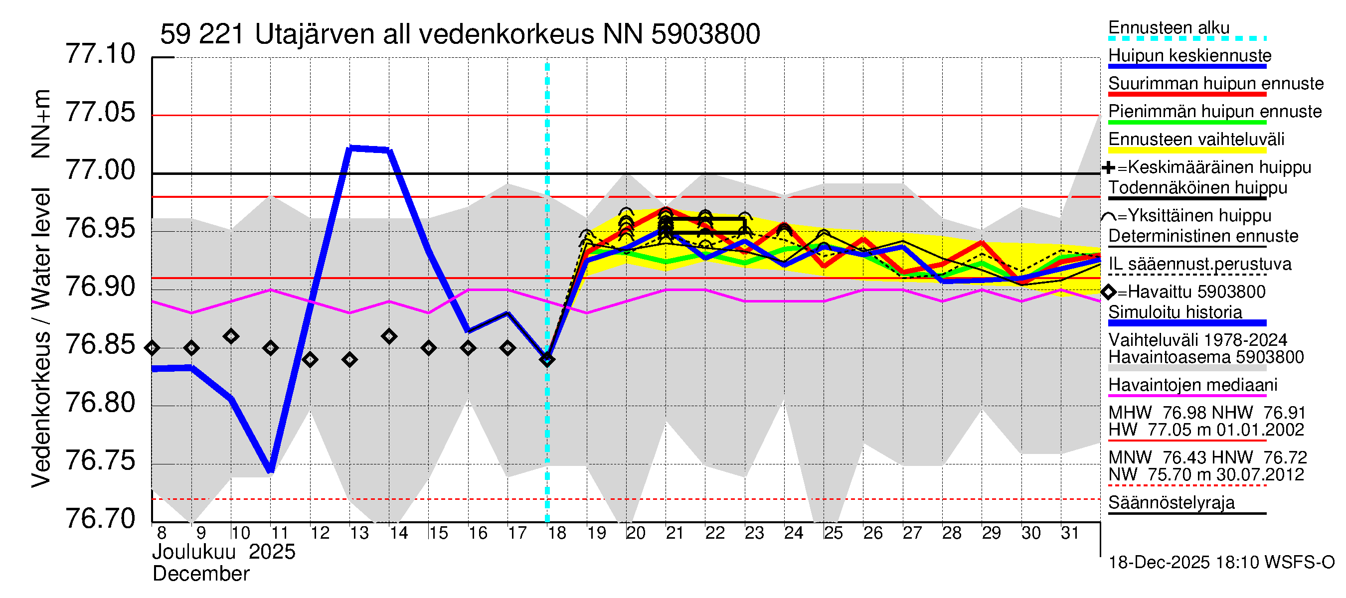 Oulujoen vesistöalue - Utajärven allas: Vedenkorkeus - huippujen keski- ja ääriennusteet