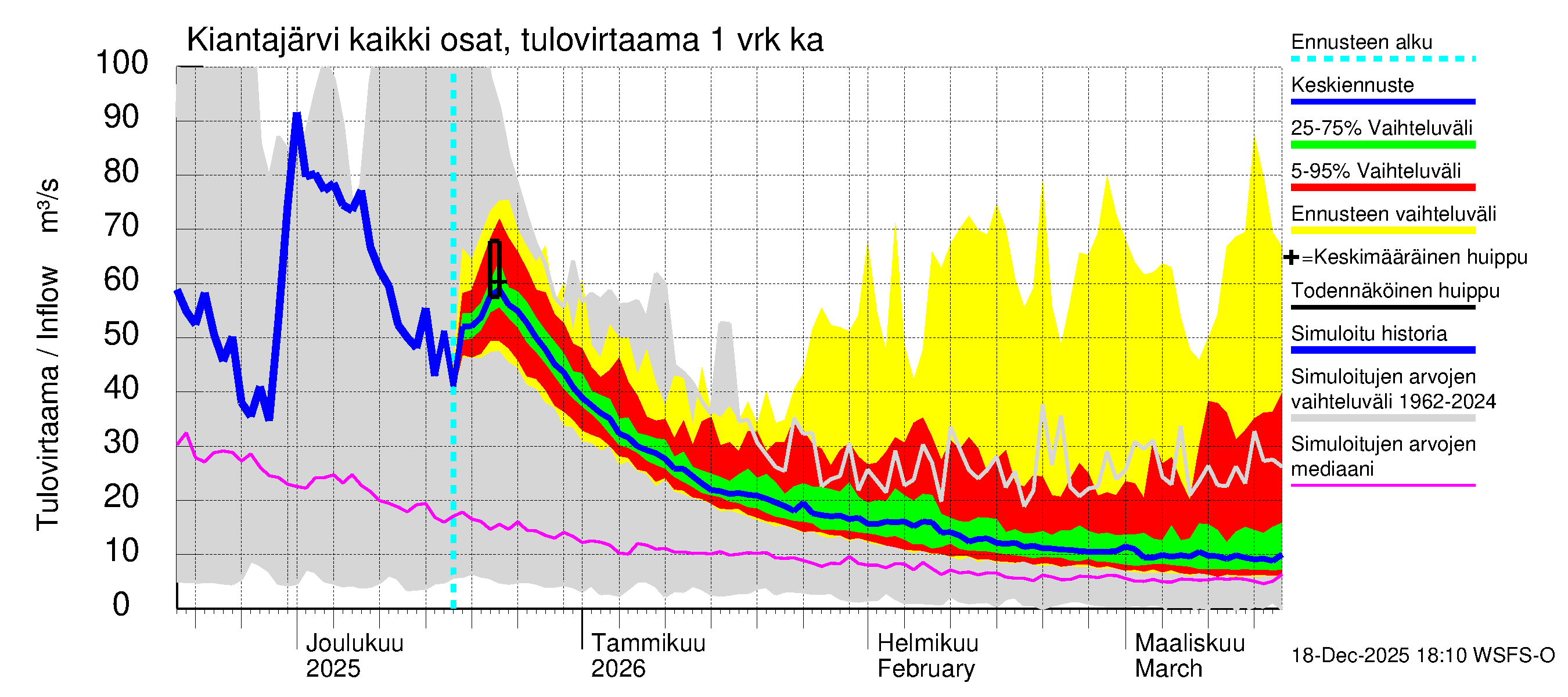 Oulujoen vesistöalue - Kiantajärvi: Tulovirtaama (usean vuorokauden liukuva keskiarvo) - jakaumaennuste