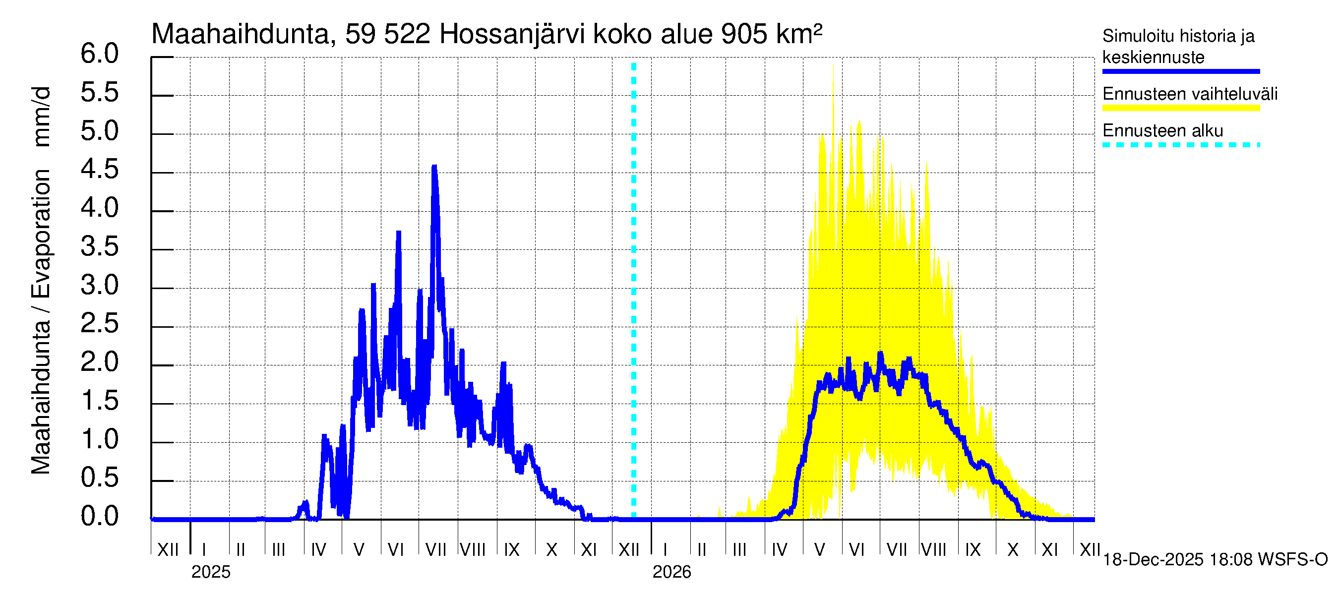 Oulujoen vesistöalue - Hossanjärvi: Haihdunta maa-alueelta - summa