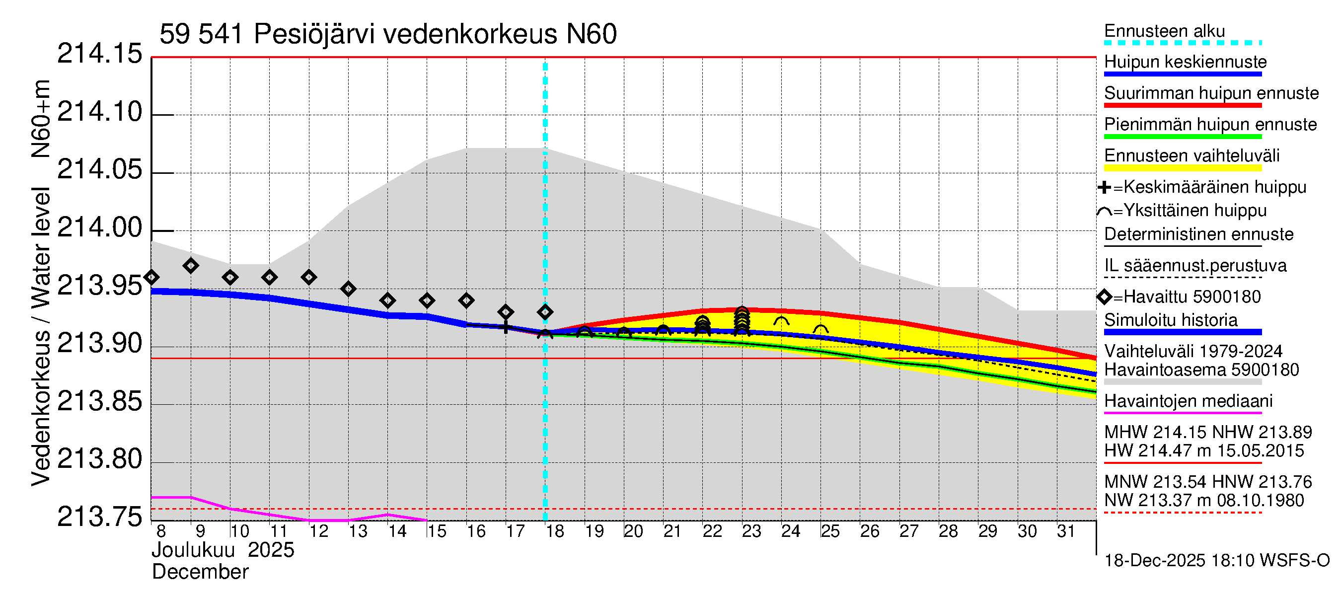Oulujoen vesistöalue - Pesiöjärvi: Vedenkorkeus - huippujen keski- ja ääriennusteet