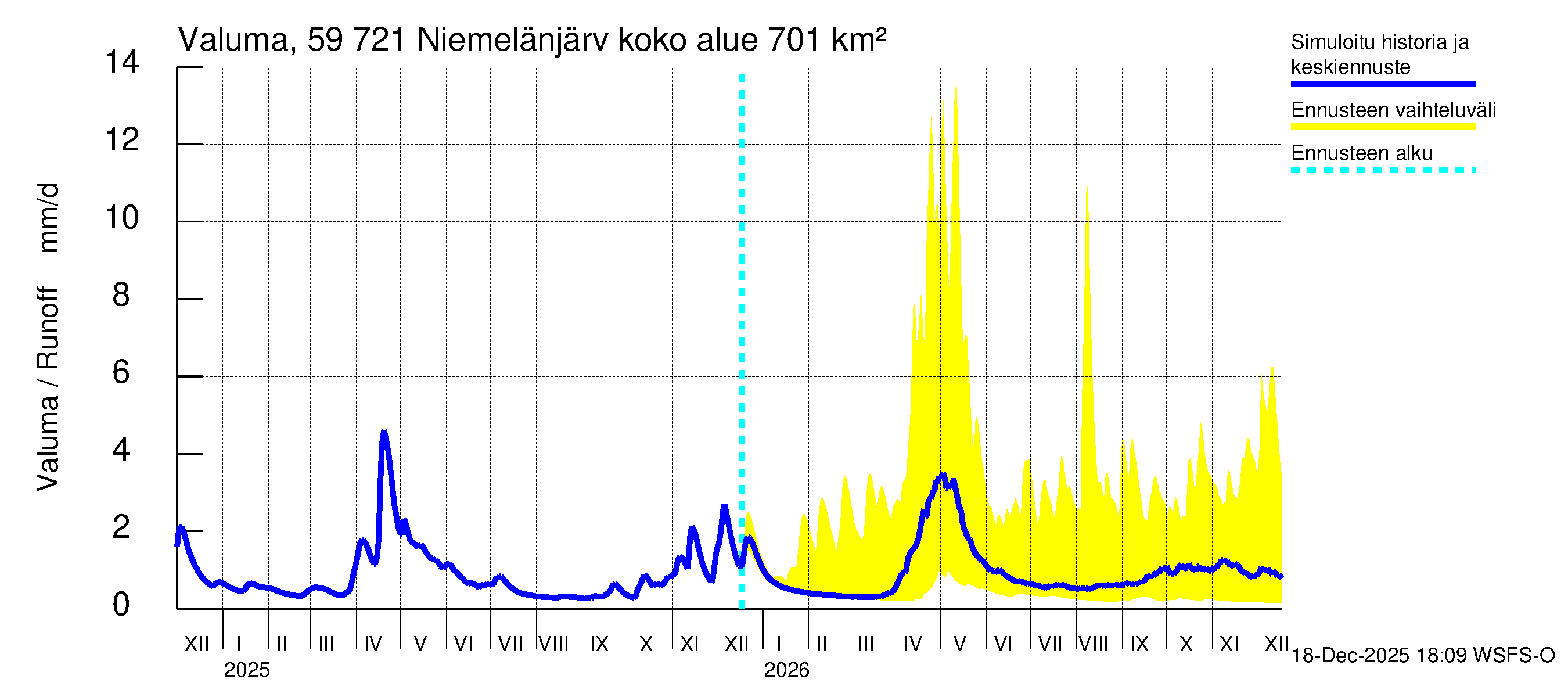 Asiantuntijan työpöytä > Oulujoen vesistöalue > Niemelänjärvi > Koko valuma-alue Ennustekuvien tulkinta