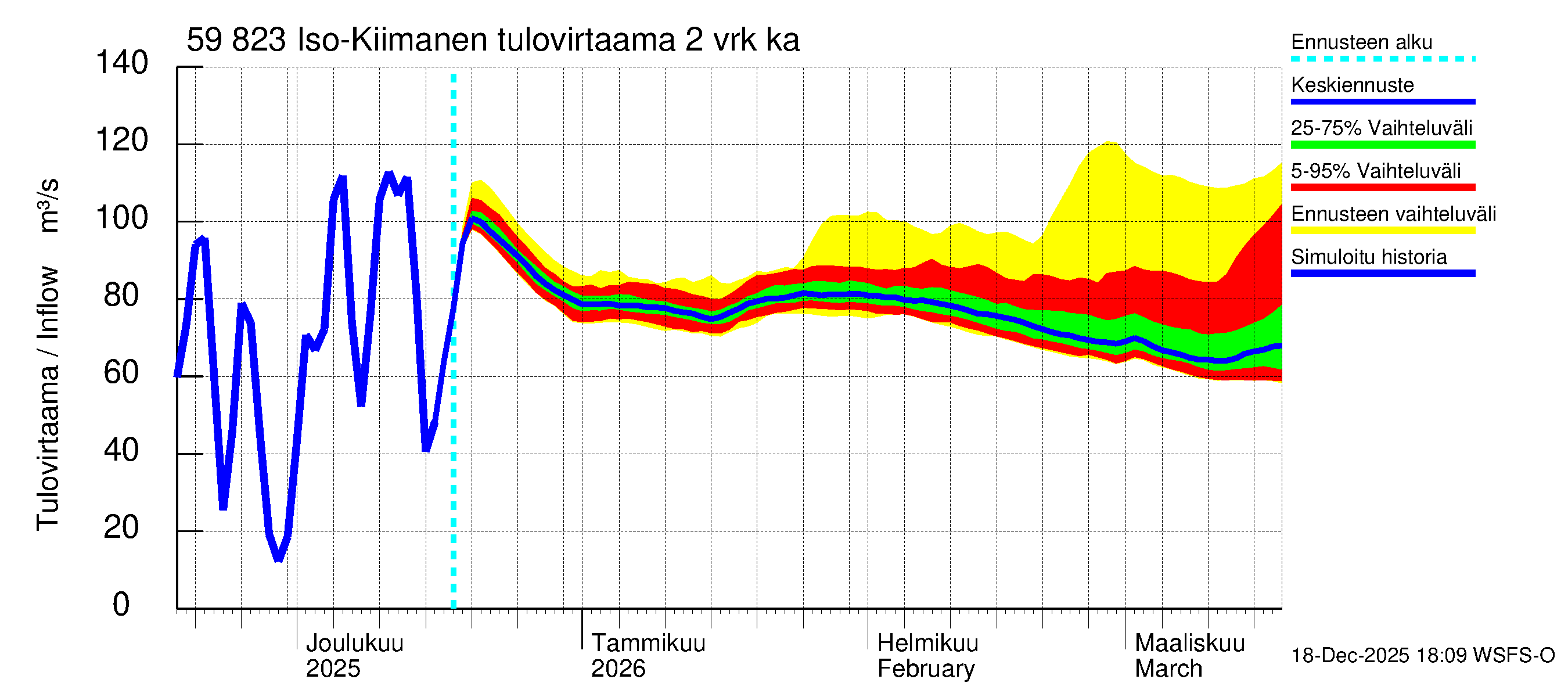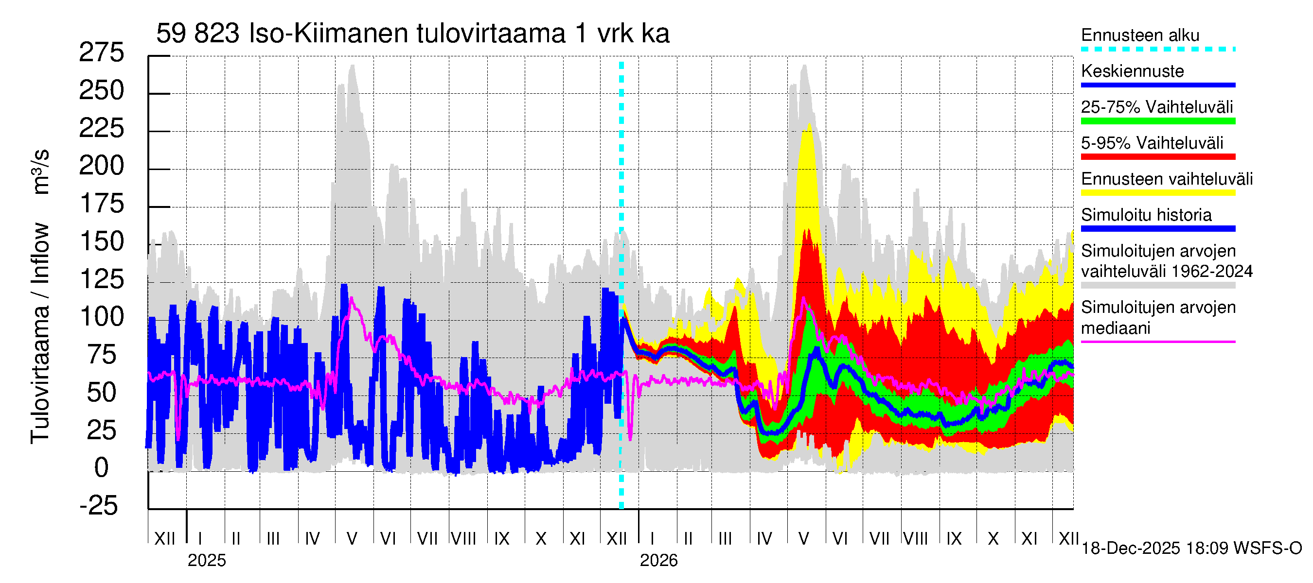 Oulujoen vesistöalue - Iso-Kiimanen: Tulovirtaama (usean vuorokauden liukuva keskiarvo) - jakaumaennuste