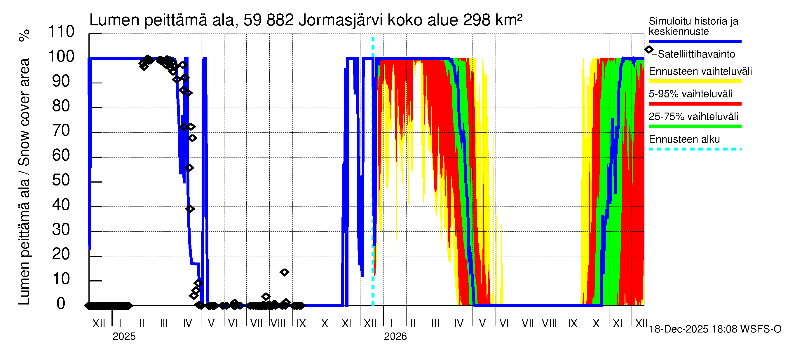Oulujoen vesistöalue - Jormasjärvi: Lumen peittämä ala