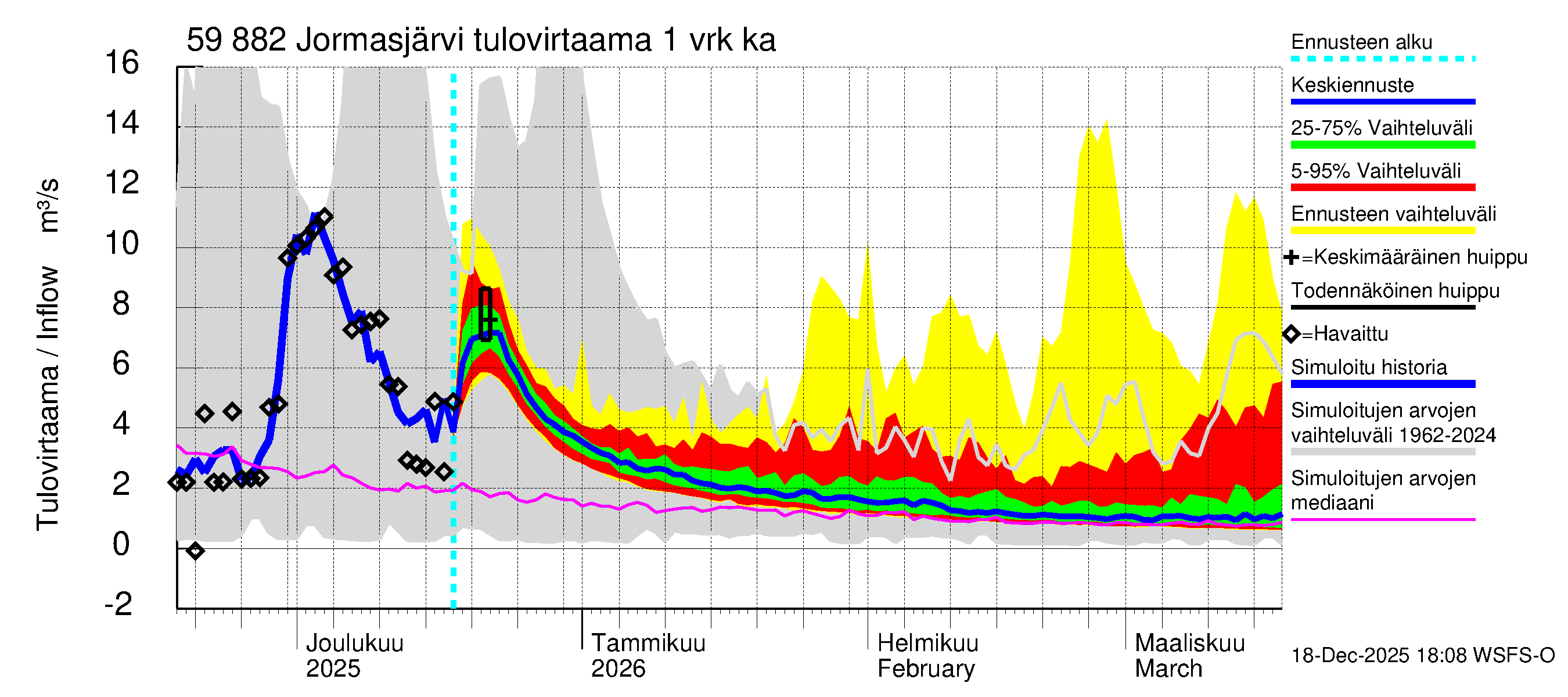 Oulujoen vesistöalue - Jormasjärvi: Tulovirtaama (usean vuorokauden liukuva keskiarvo) - jakaumaennuste