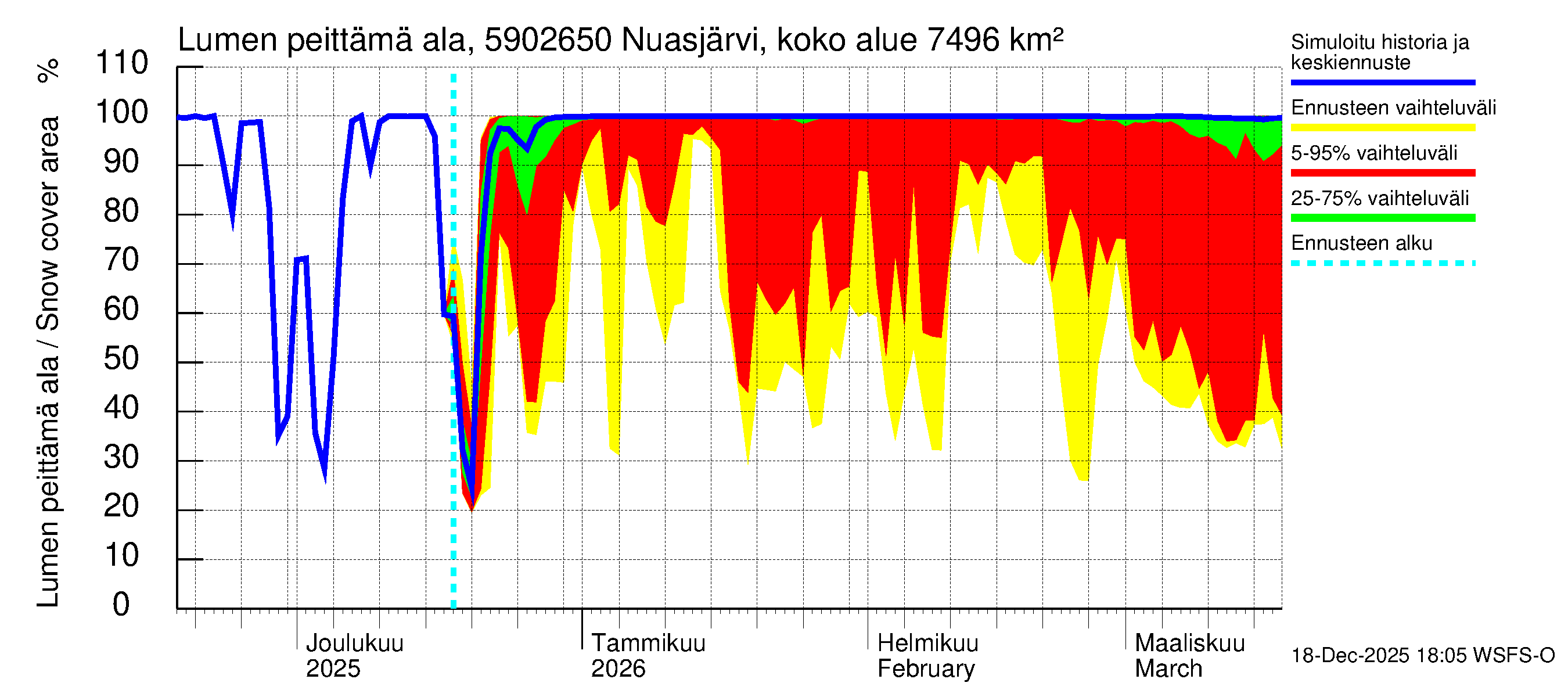 Oulujoen vesistöalue - Koivukoski: Lumen peittämä ala