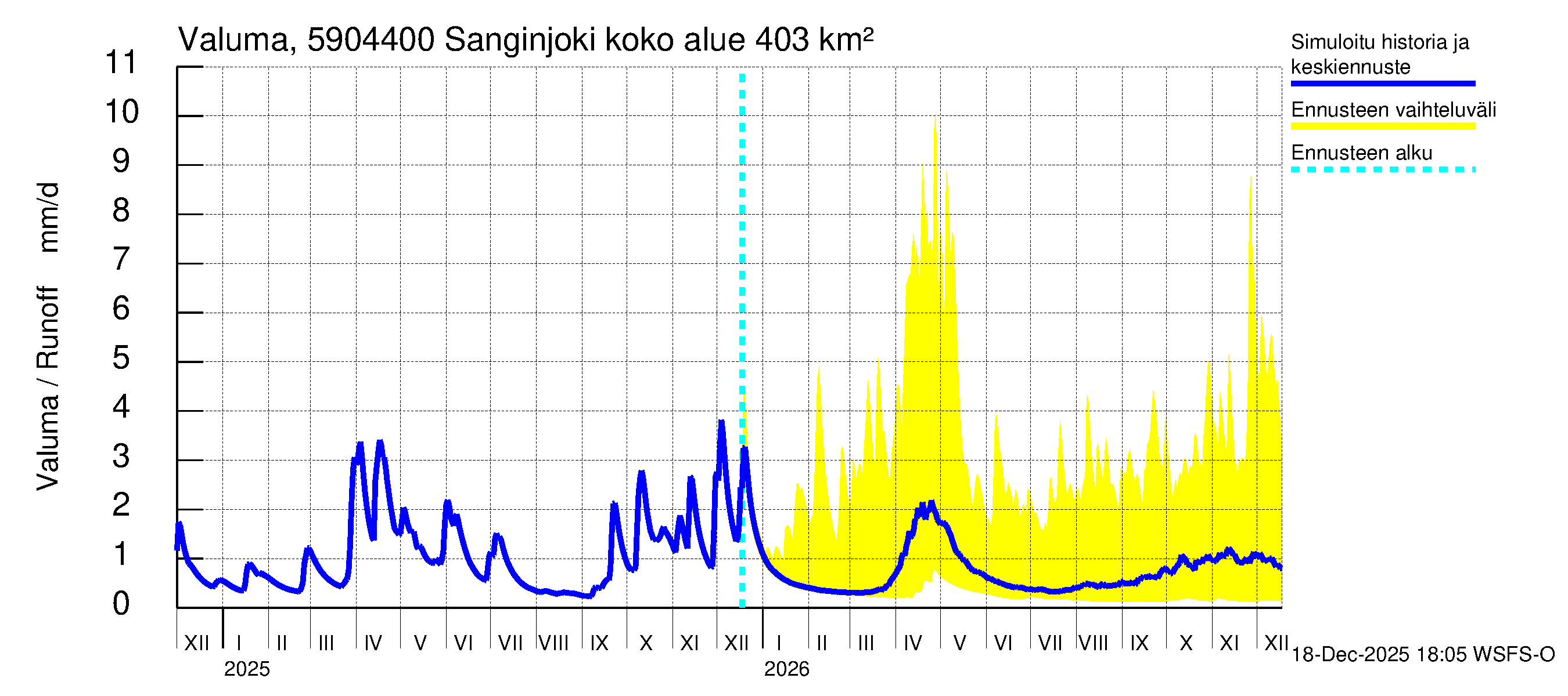 Asiantuntijan työpöytä > Oulujoen vesistöalue > Sanginjoki > Koko valuma-alue Ennustekuvien tulkinta