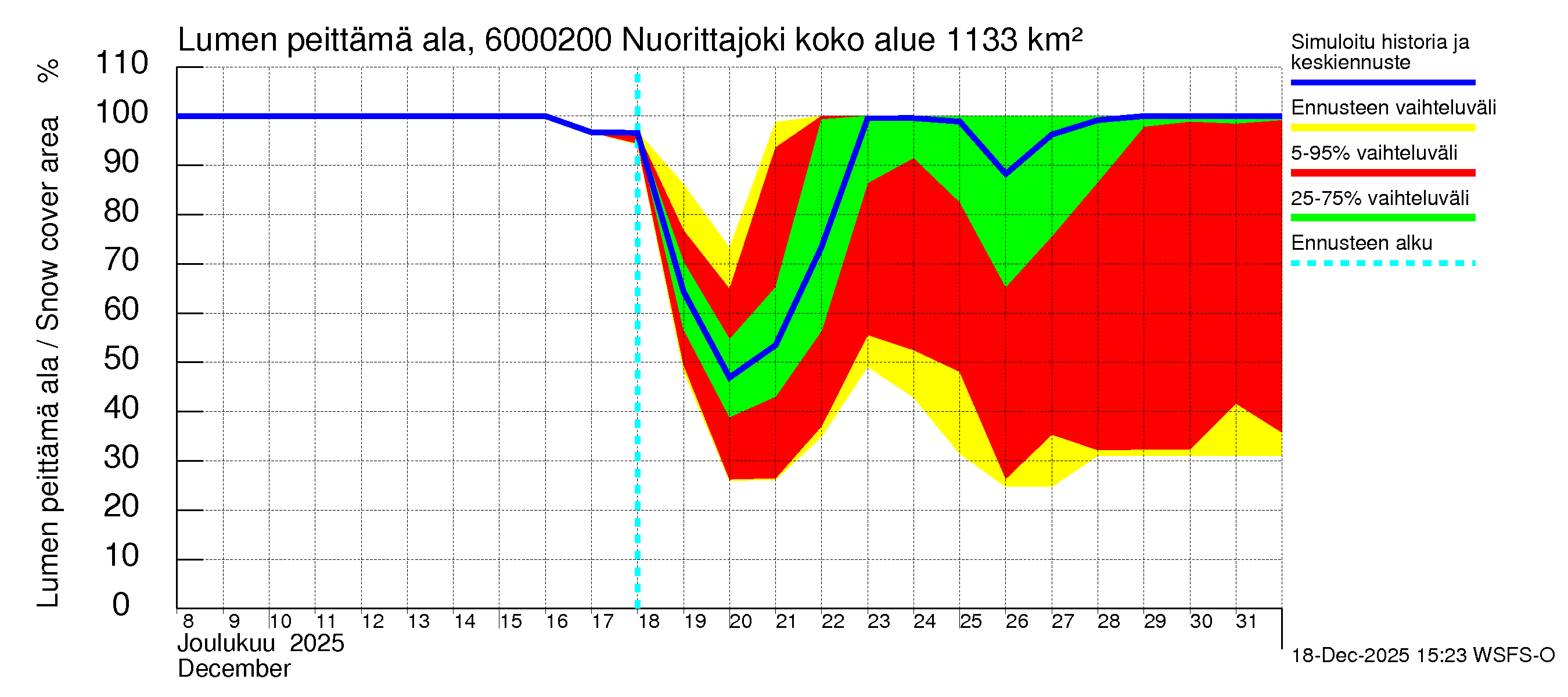 Kiiminkijoen vesistöalue - Nuorittajoki: Lumen peittämä ala