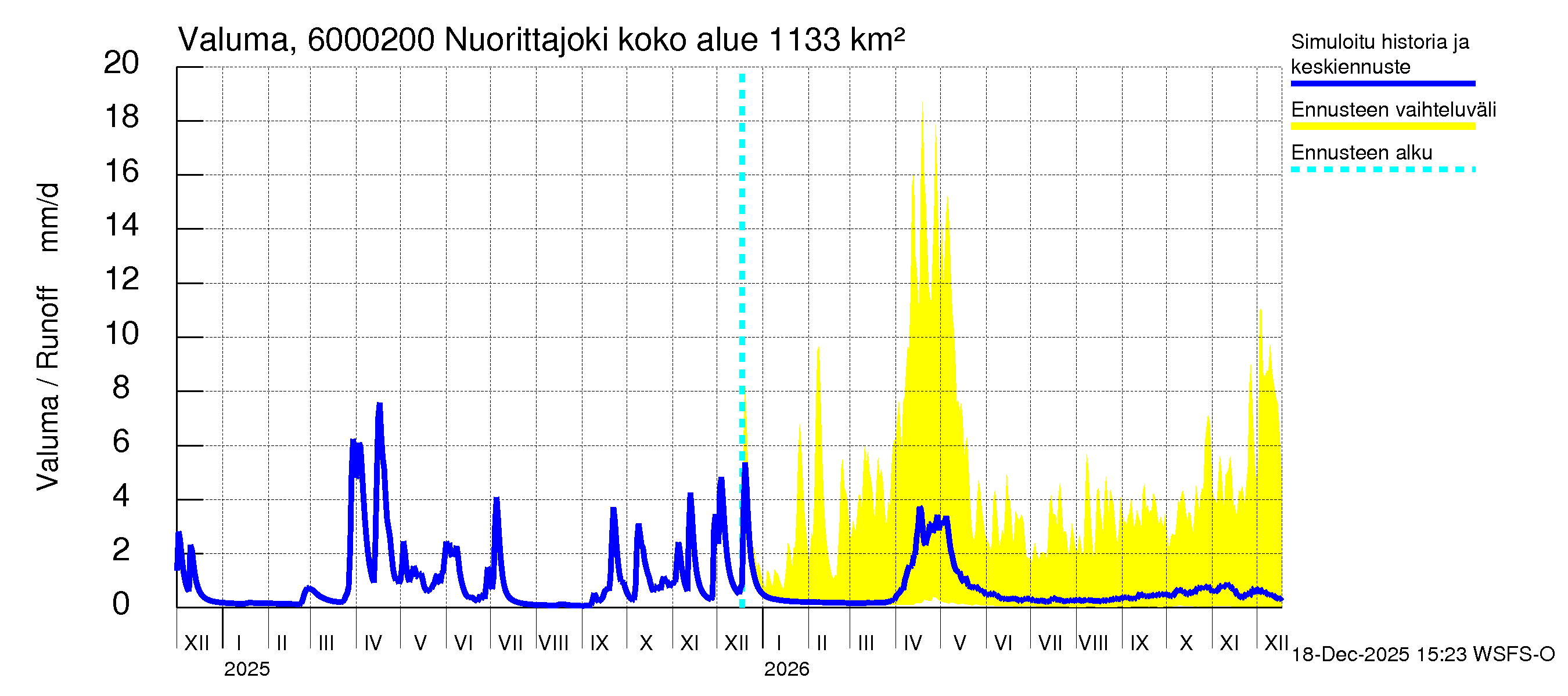 Asiantuntijan työpöytä > Kiiminkijoen vesistöalue > Nuorittajoki > Koko valuma-alue / Lähivaluma-alue Ennustekuvien tulkinta