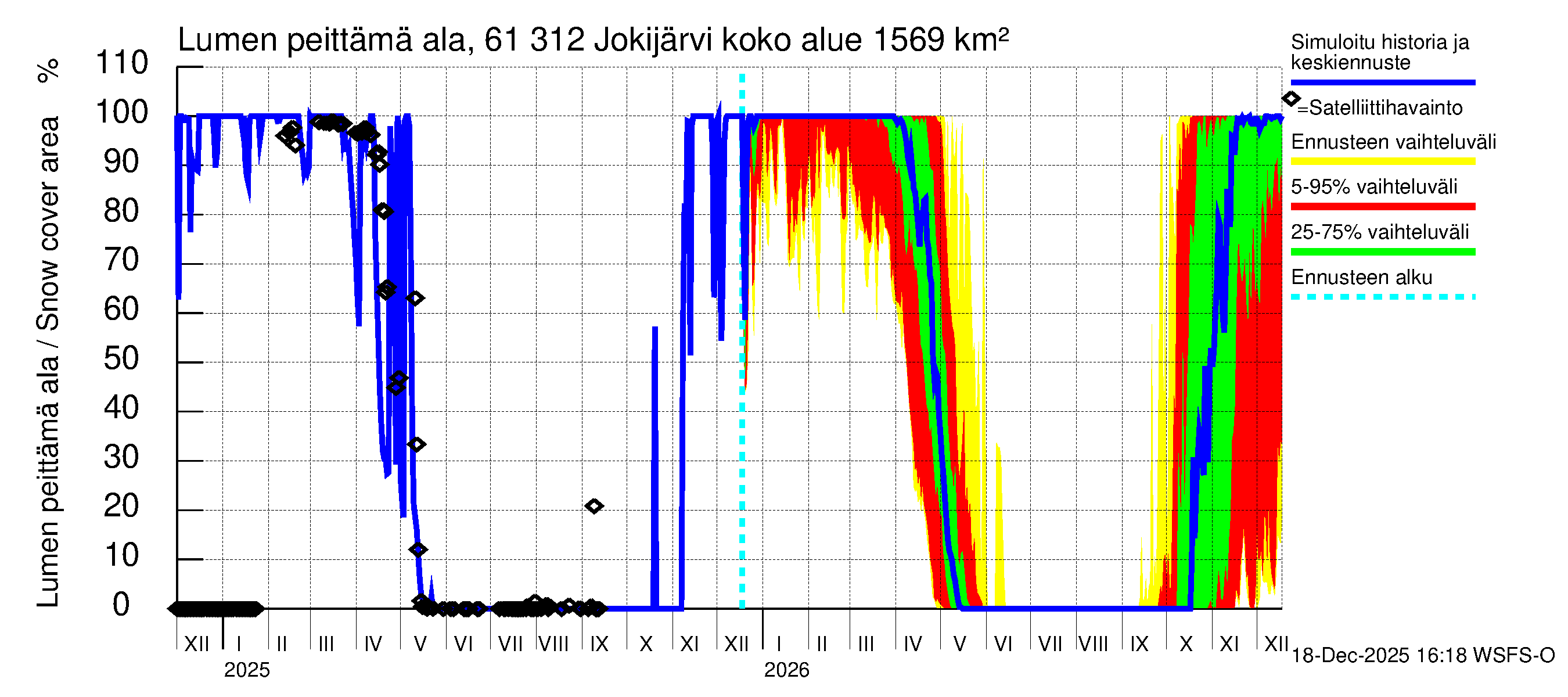 Iijoen vesistöalue - Jokijärvi: Lumen peittämä ala