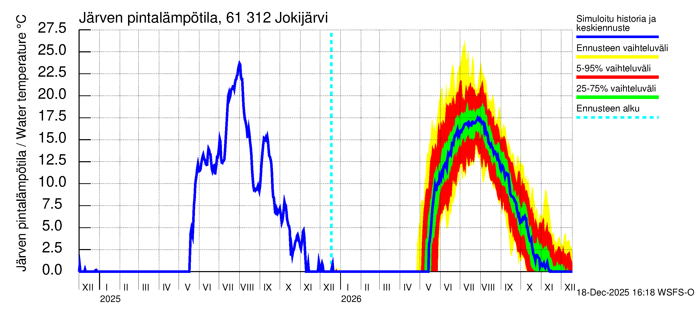 Iijoen vesistöalue - Jokijärvi: Järven pintalämpötila
