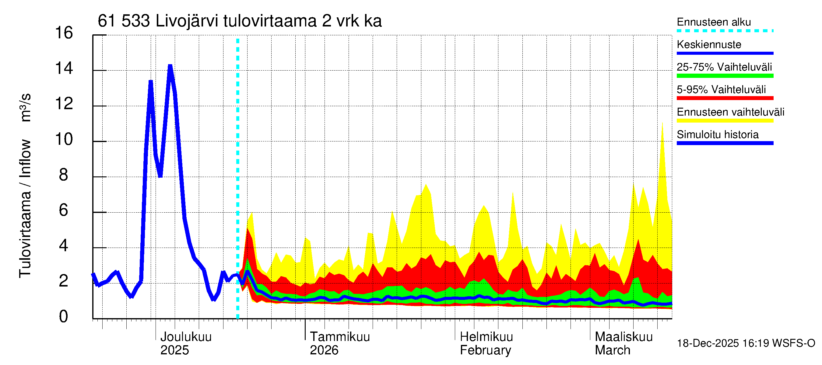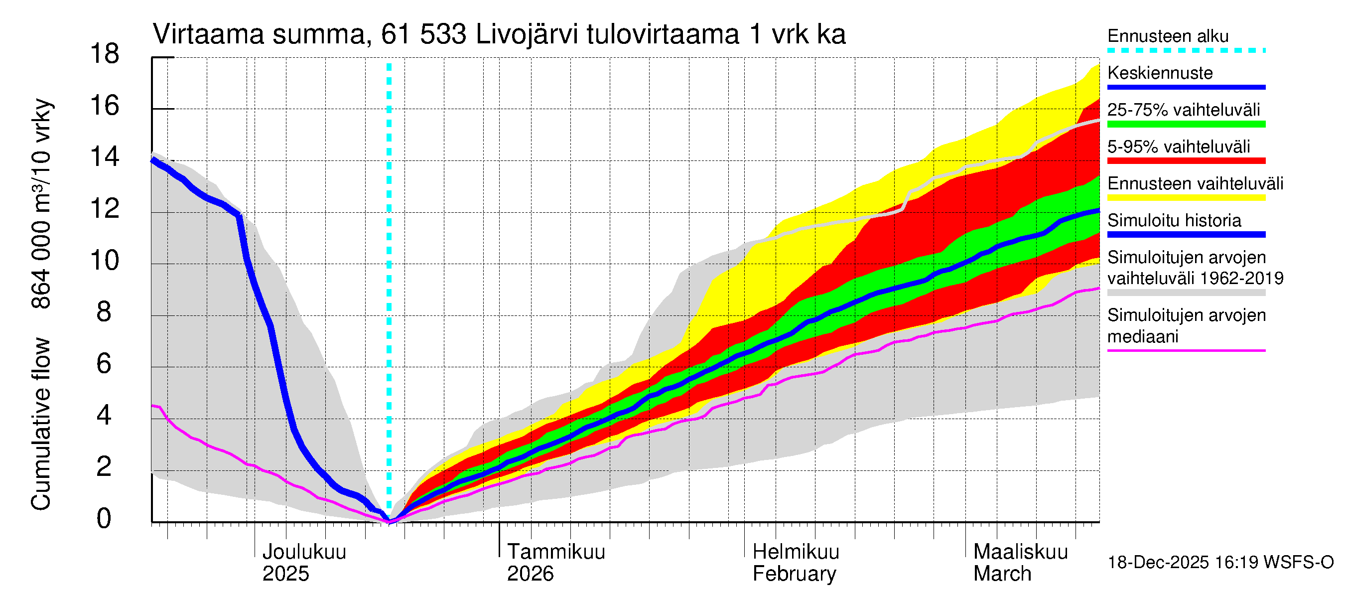 Iijoen vesistöalue - Livojärvi: Tulovirtaama (usean vuorokauden liukuva keskiarvo) - jakaumaennuste
