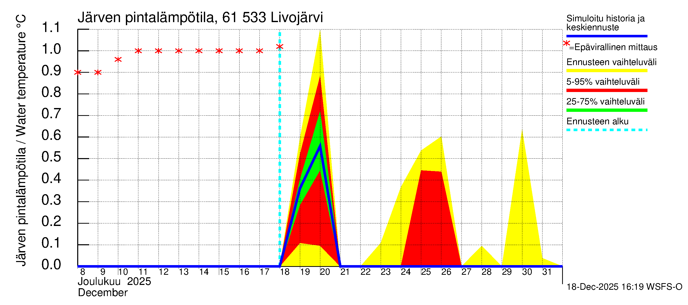 Iijoen vesistöalue - Livojärvi: Järven pintalämpötila