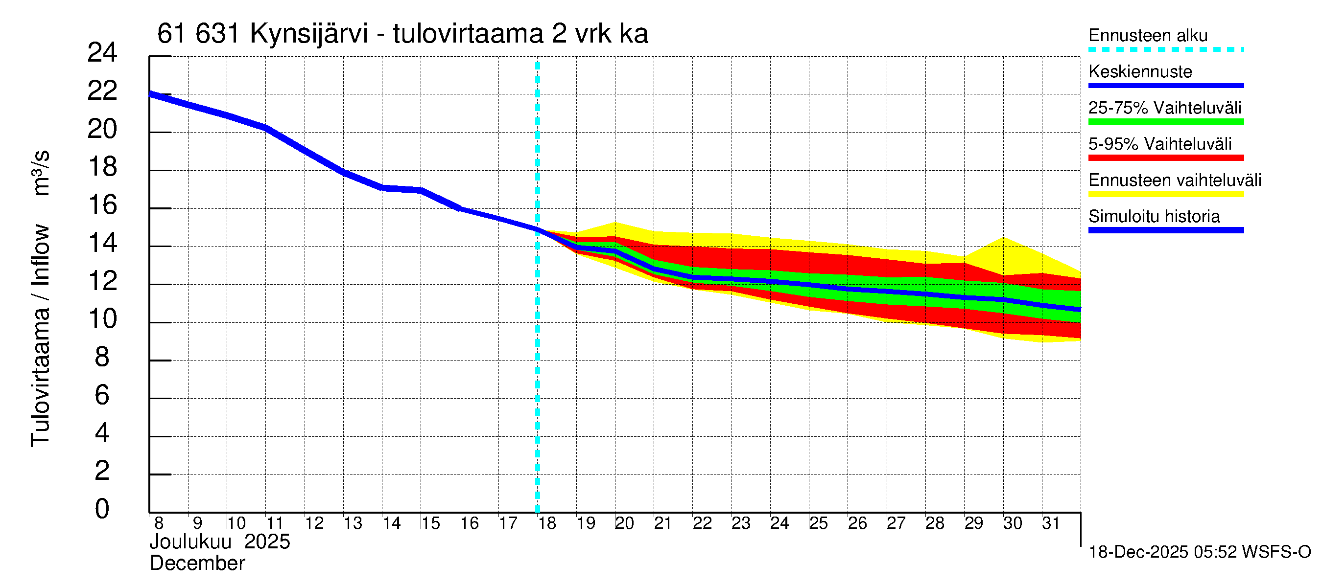 Iijoen vesistöalue - Kynsijärvi-Kynsilampi: Tulovirtaama (usean vuorokauden liukuva keskiarvo) - jakaumaennuste