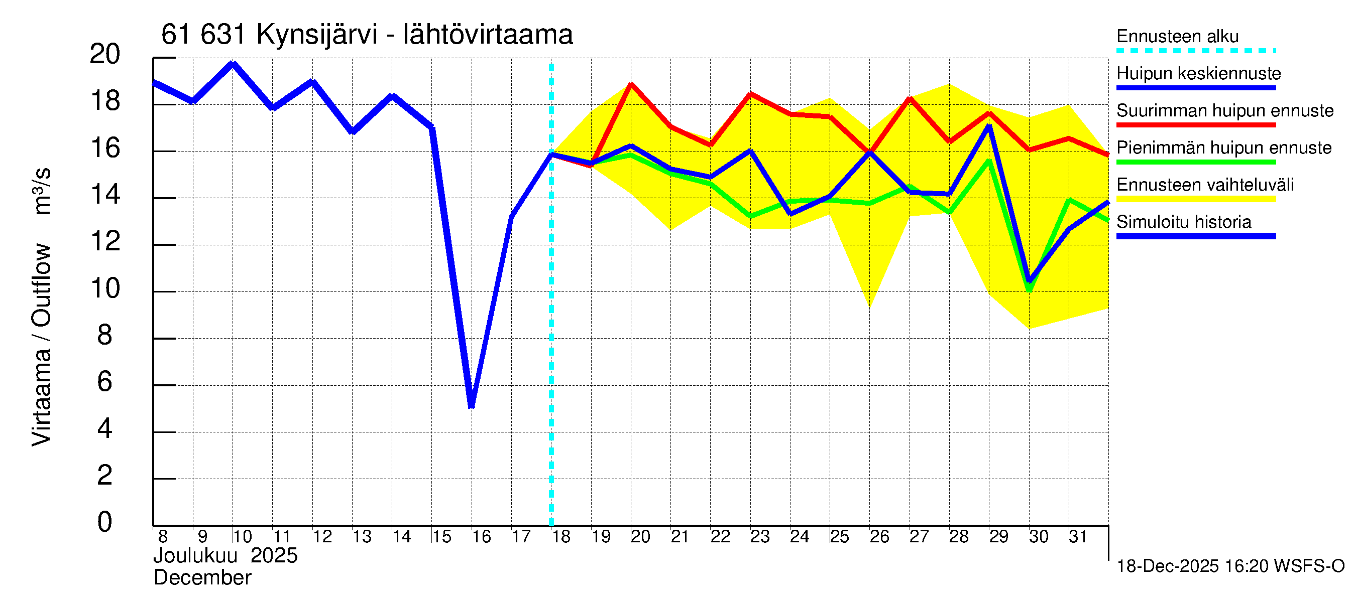Iijoen vesistöalue - Kynsijärvi-Kynsilampi: Lähtövirtaama / juoksutus - huippujen keski- ja ääriennusteet