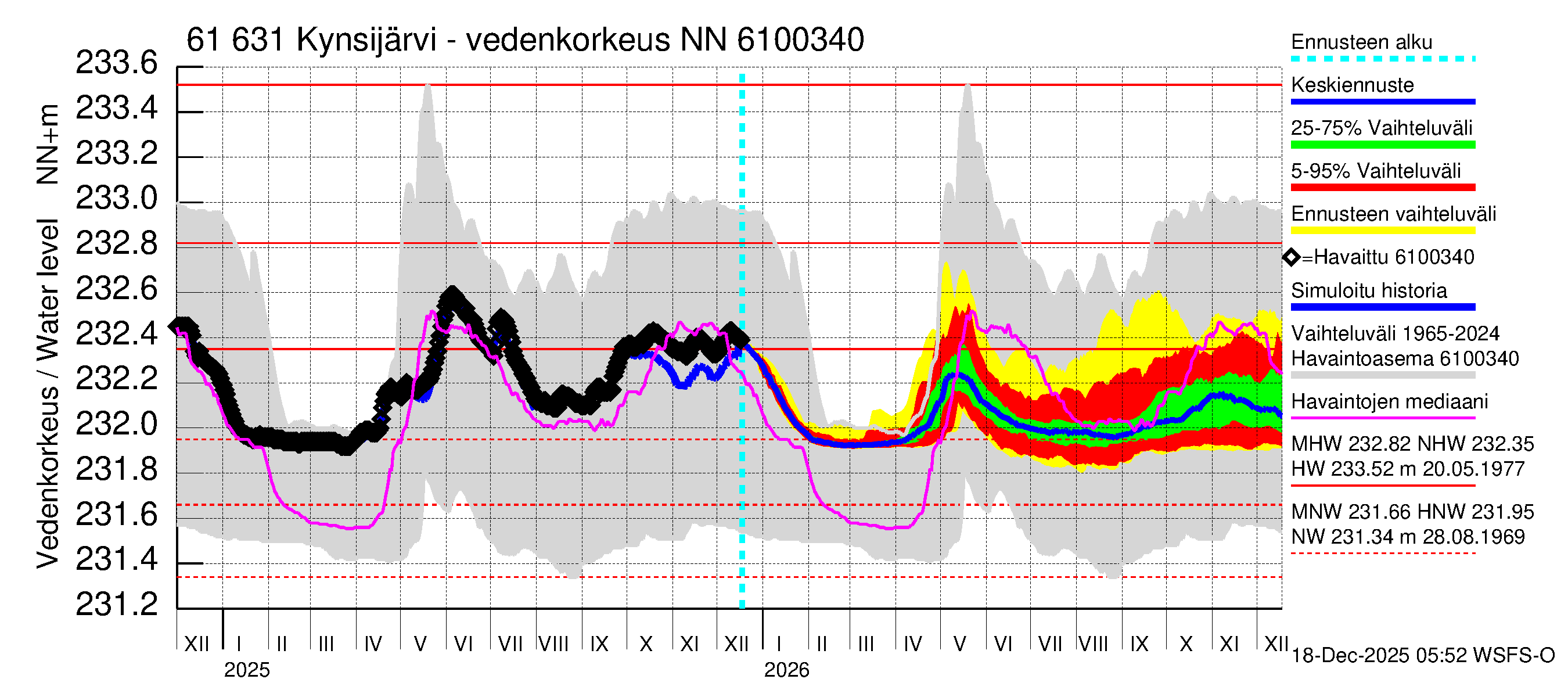 Iijoen vesistöalue - Kynsijärvi-Kynsilampi: Vedenkorkeus - huippujen keski- ja ääriennusteet