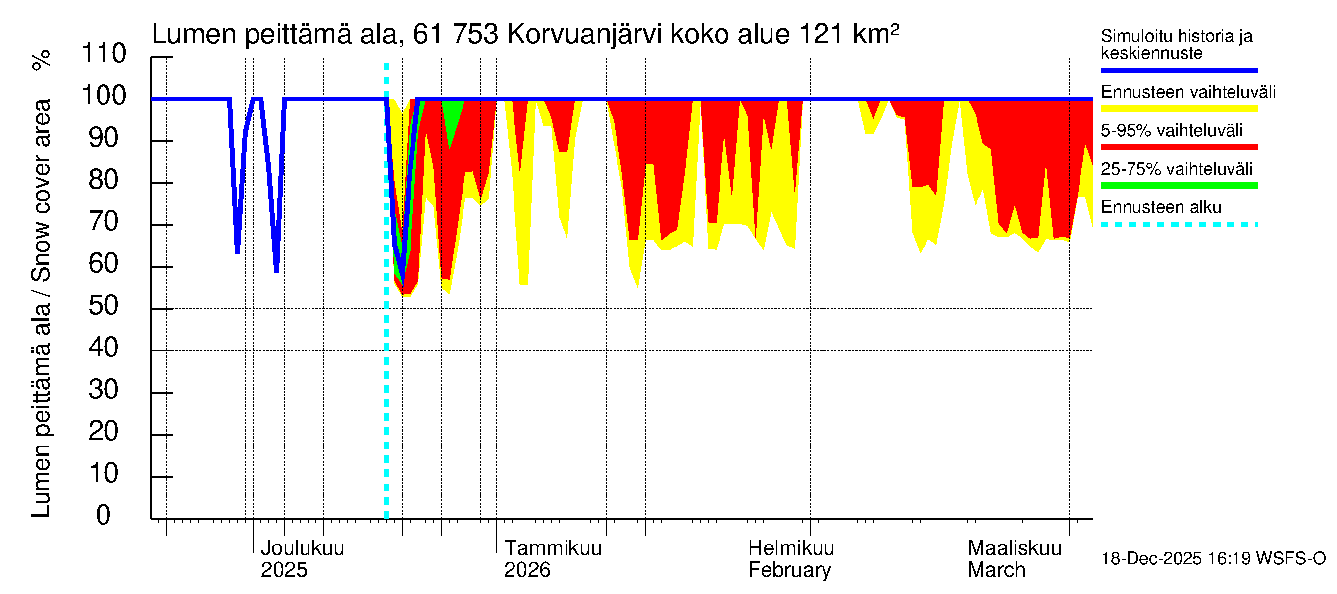 Iijoen vesistöalue - Korvuanjärvi: Lumen peittämä ala