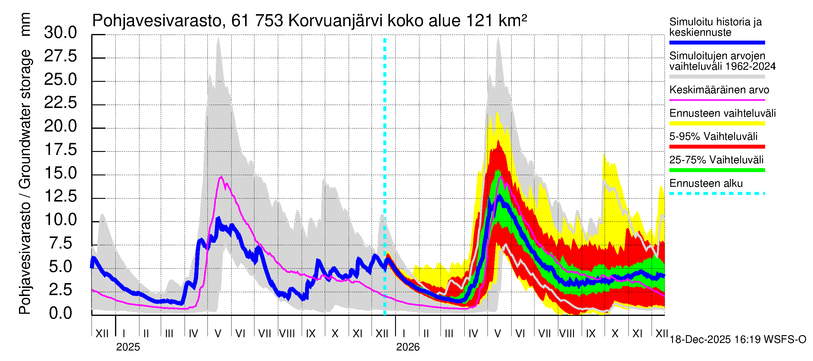 Asiantuntijan työpöytä > Iijoen vesistöalue > Korvuanjärvi > Koko valuma-alue Ennustekuvien tulkinta