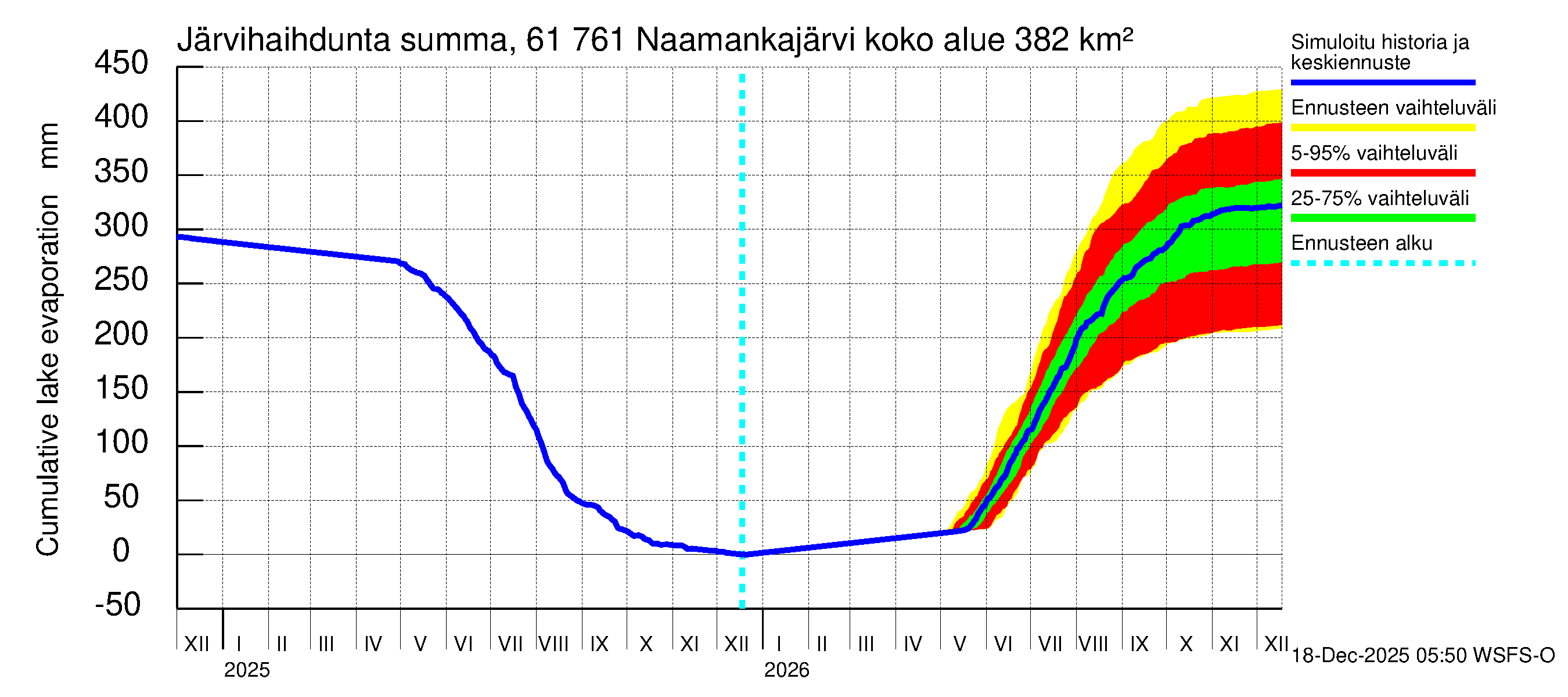 Iijoen vesistöalue - Naamankajärvi-Polvijärvet: Haihdunta maa-alueelta - summa