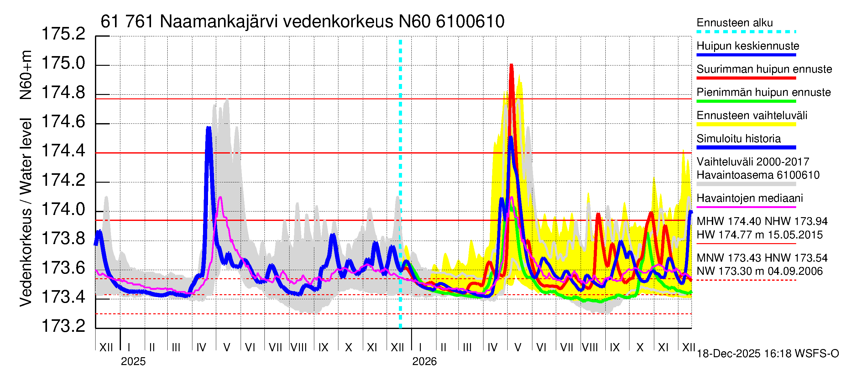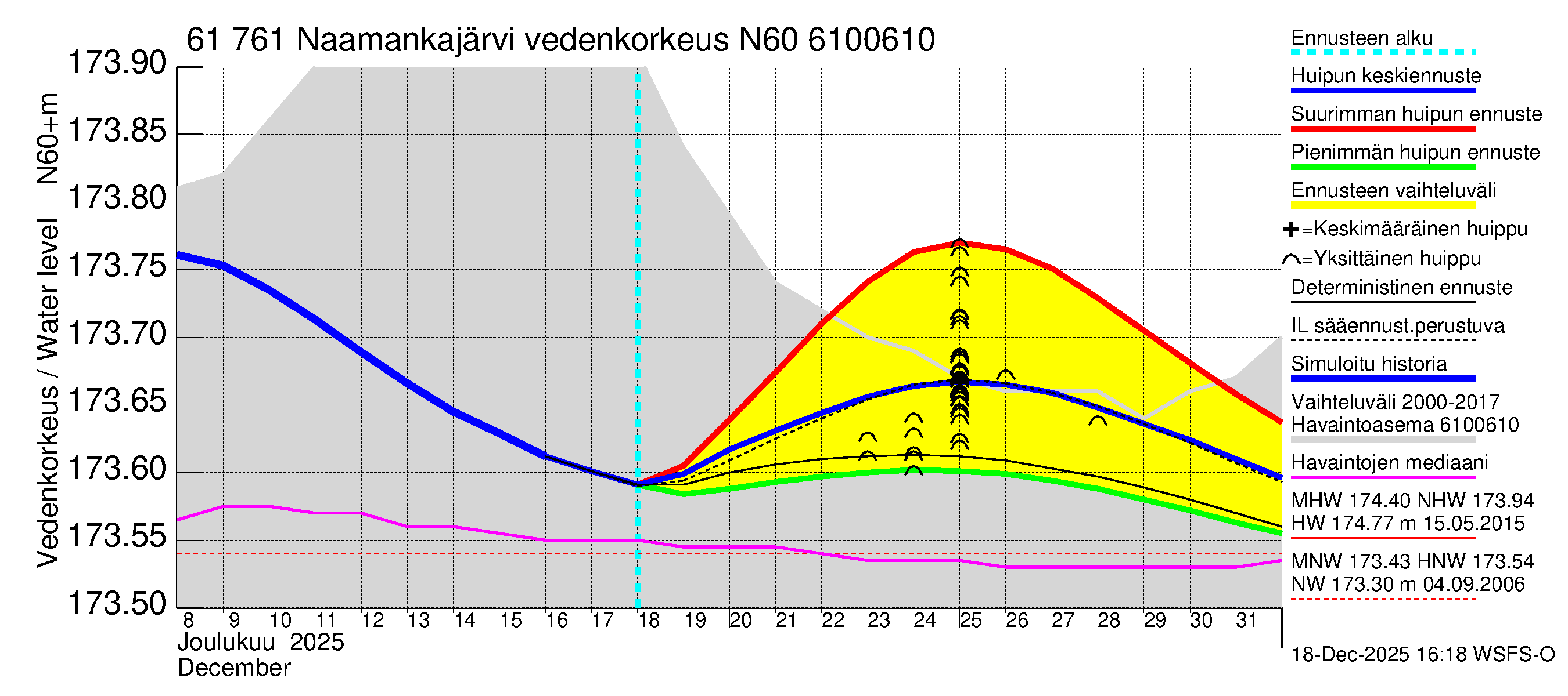Iijoen vesistöalue - Naamankajärvi-Polvijärvet: Vedenkorkeus - huippujen keski- ja ääriennusteet
