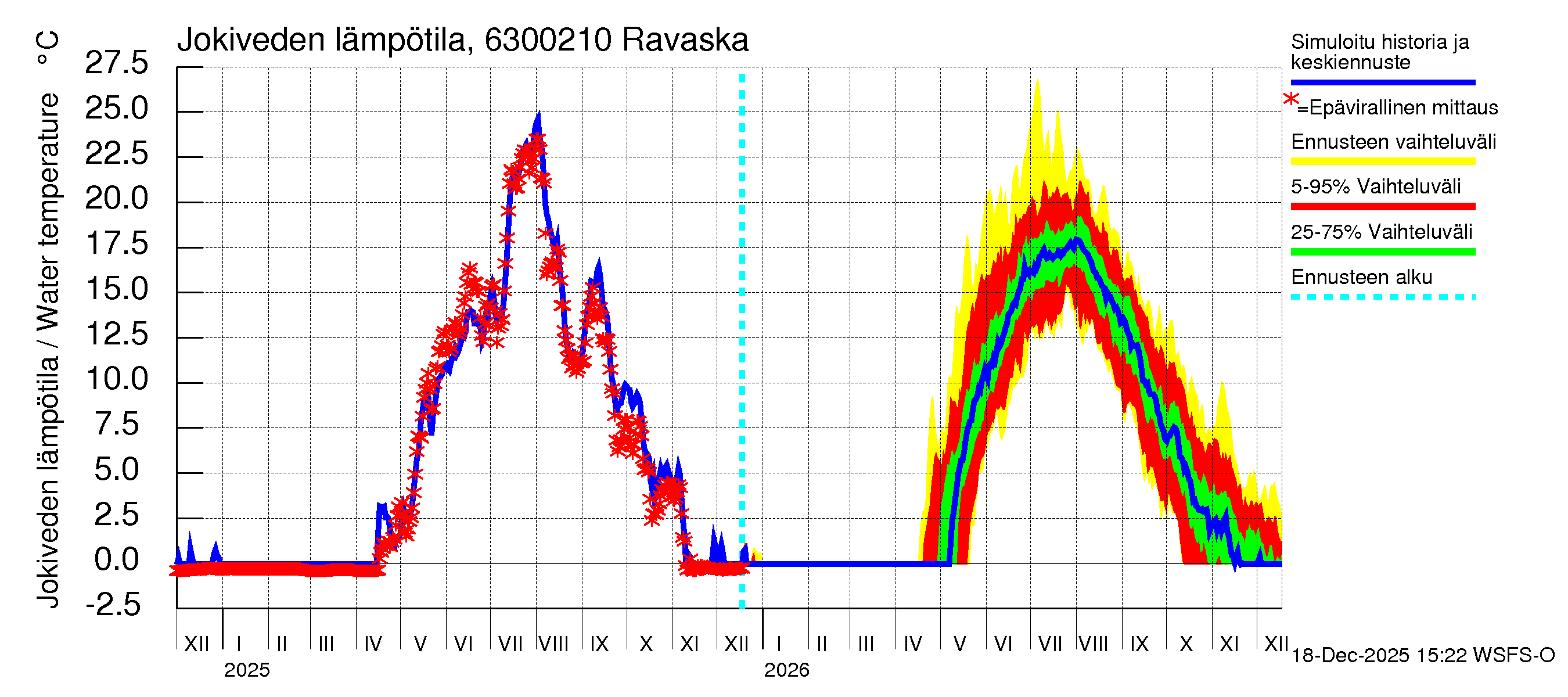 Kuivajoen vesistöalue - Ravaska: Jokiveden lämpötila