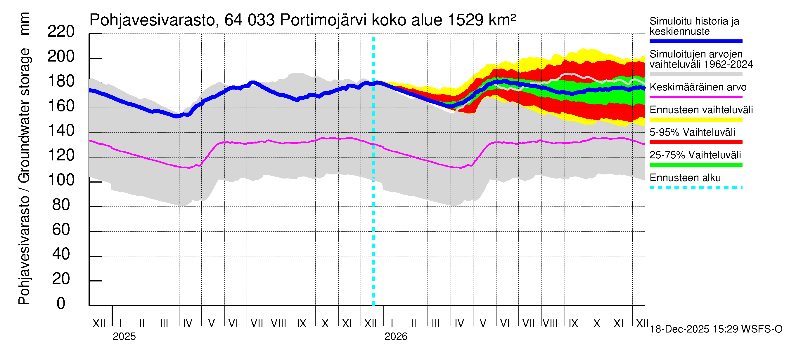 Simojoen vesistöalue - Portimojärvi: Vedenkorkeus - jakaumaennuste