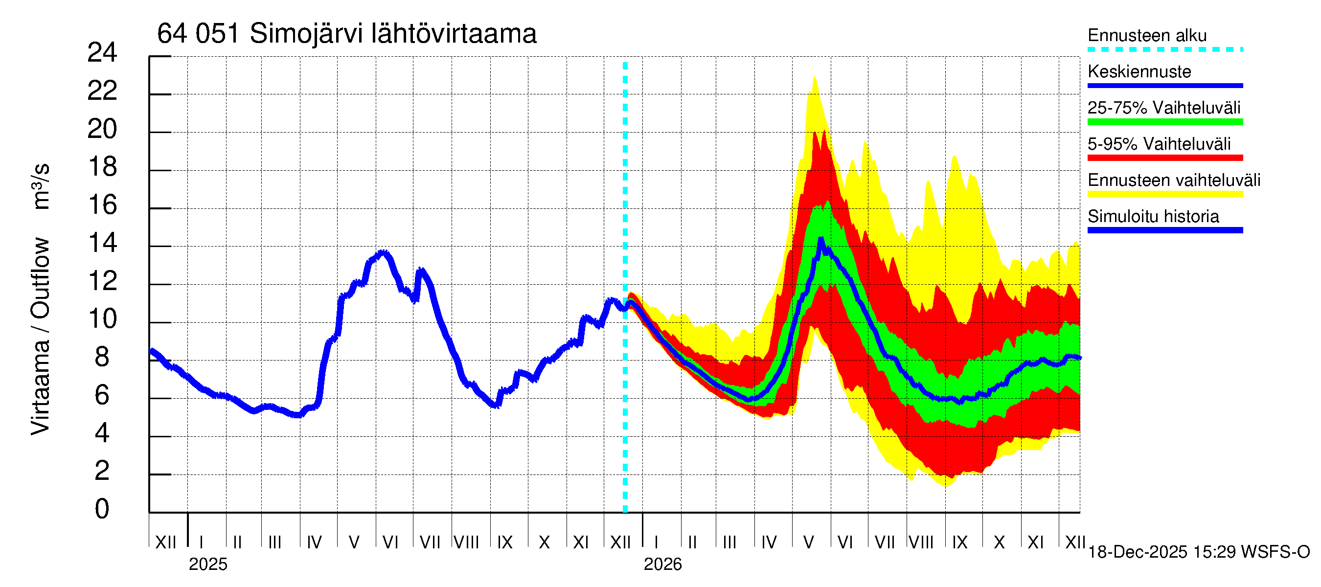 Simojoen vesistöalue - Simojärvi: Lähtövirtaama / juoksutus - jakaumaennuste