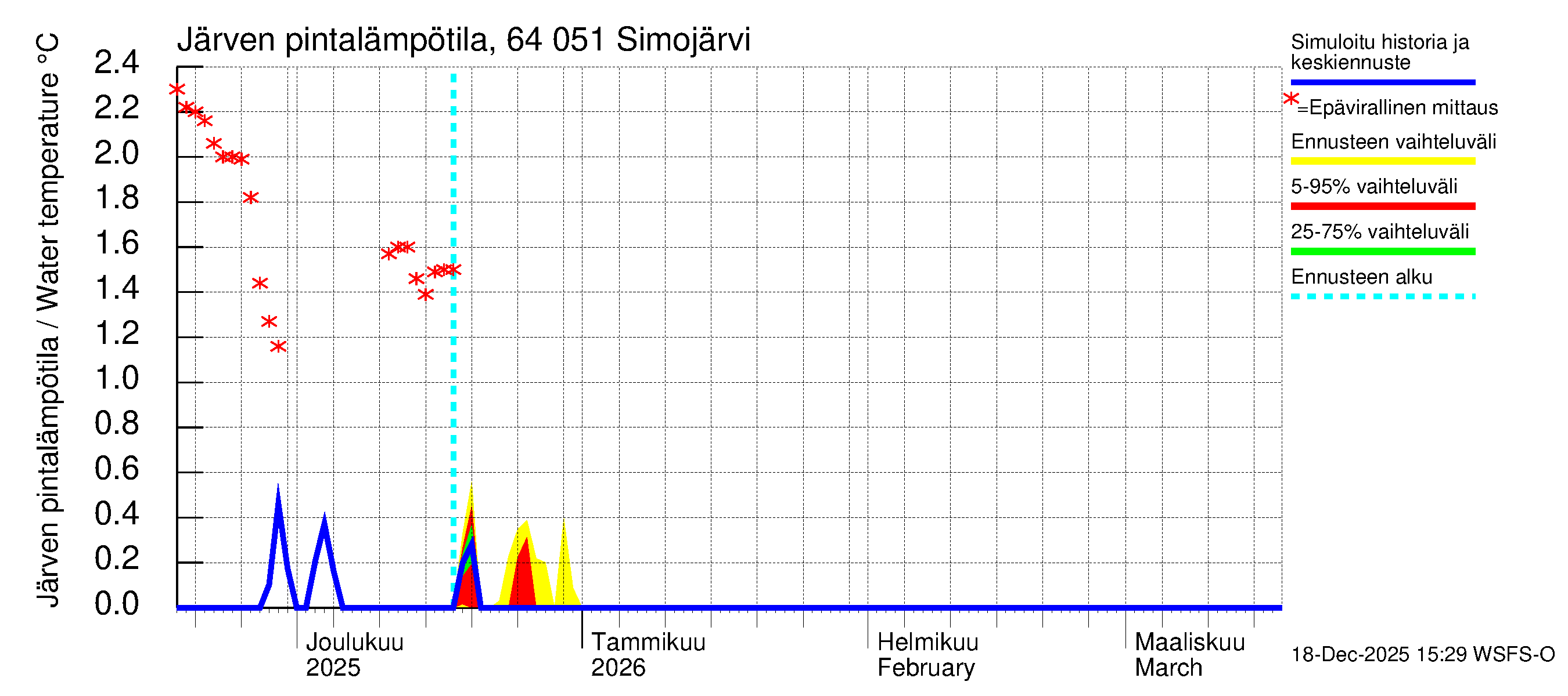 Simojoen vesistöalue - Simojärvi: Järven pintalämpötila
