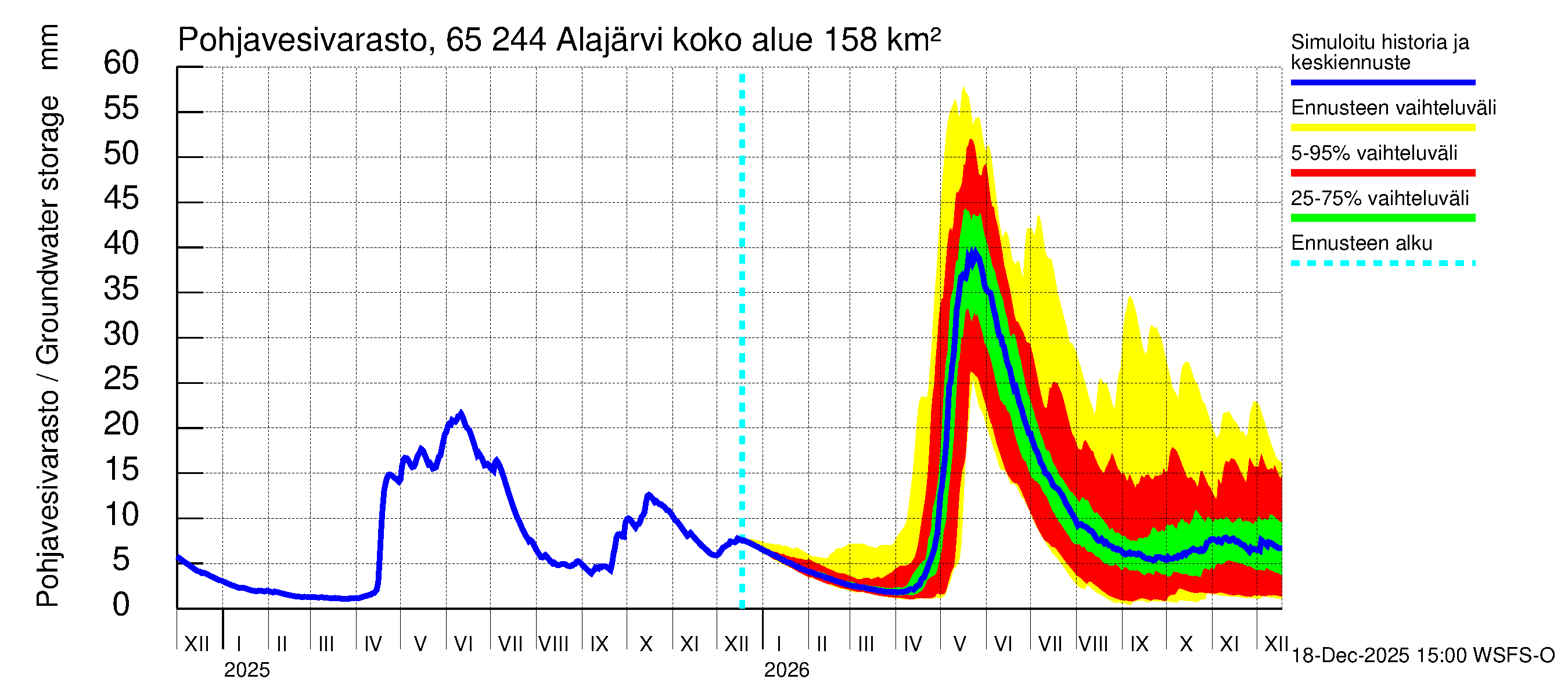 Kemijoen vesistöalue - Alajärvi: Vedenkorkeus - huippujen keski- ja ääriennusteet