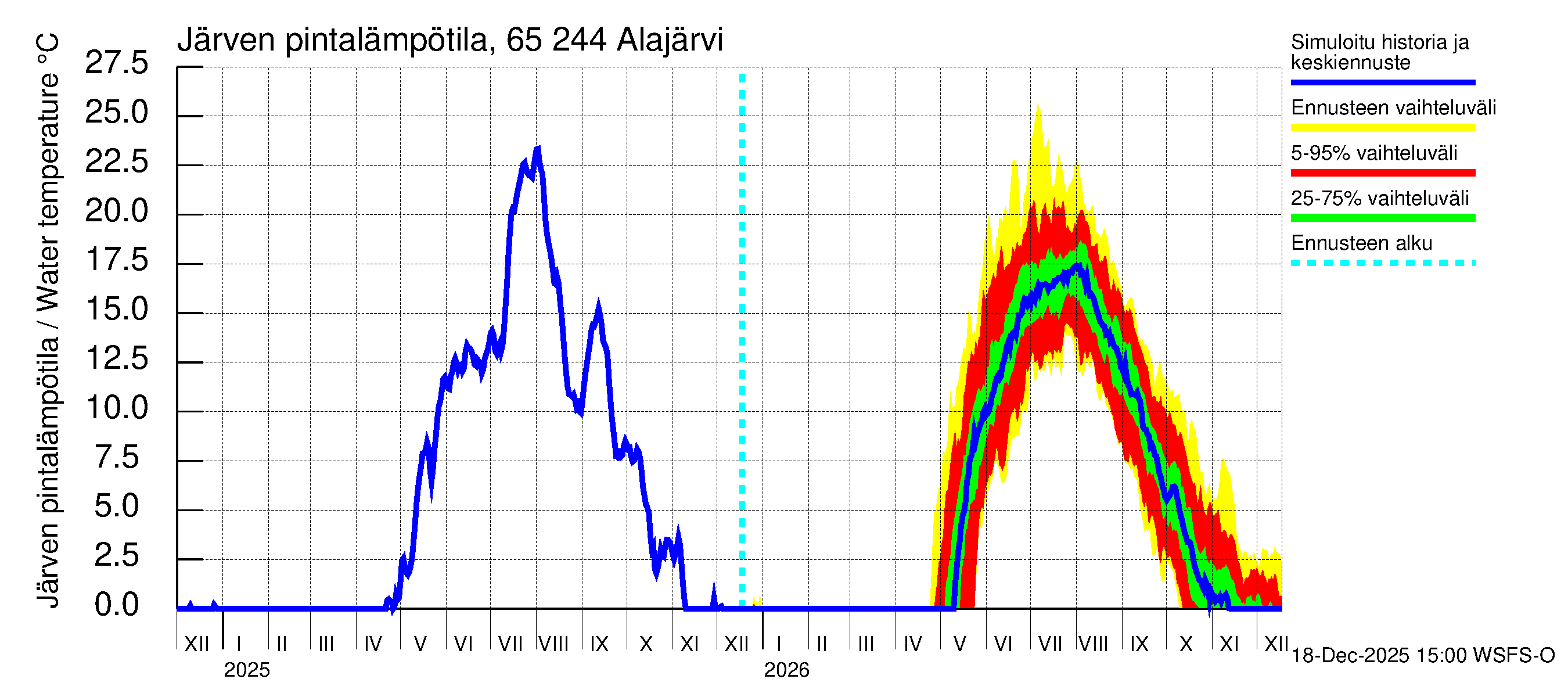 Kemijoen vesistöalue - Alajärvi: Järven pintalämpötila