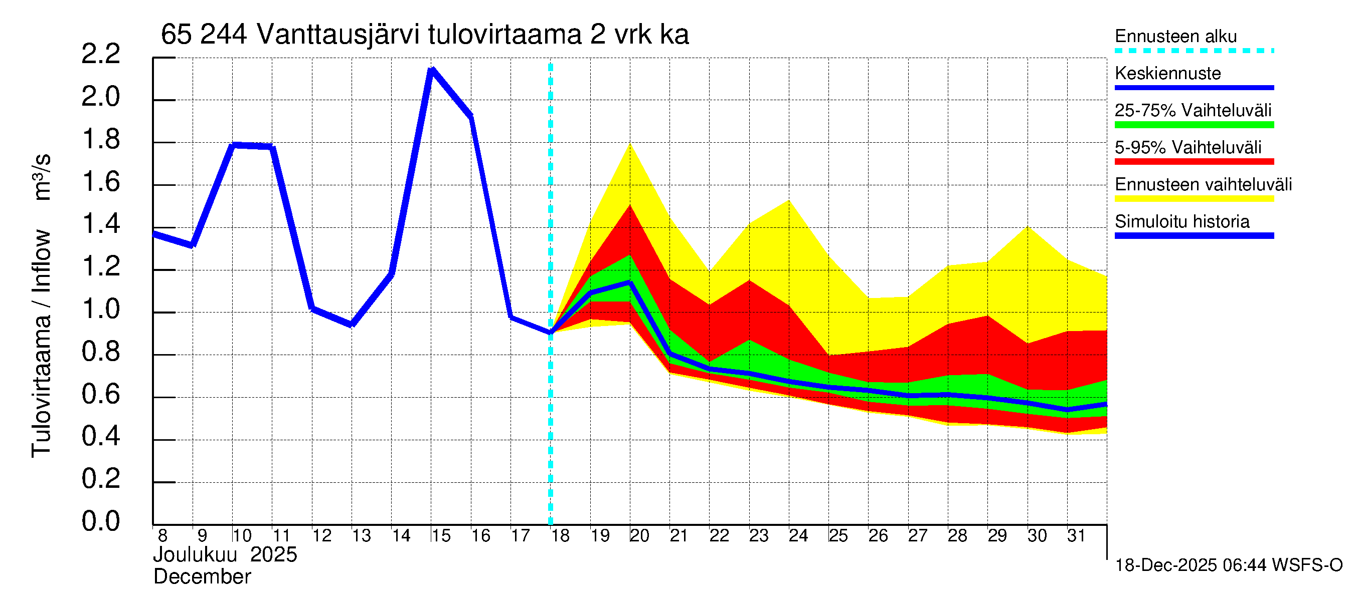 Kemijoen vesistöalue - Vanttausjärvi: Tulovirtaama (usean vuorokauden liukuva keskiarvo) - jakaumaennuste