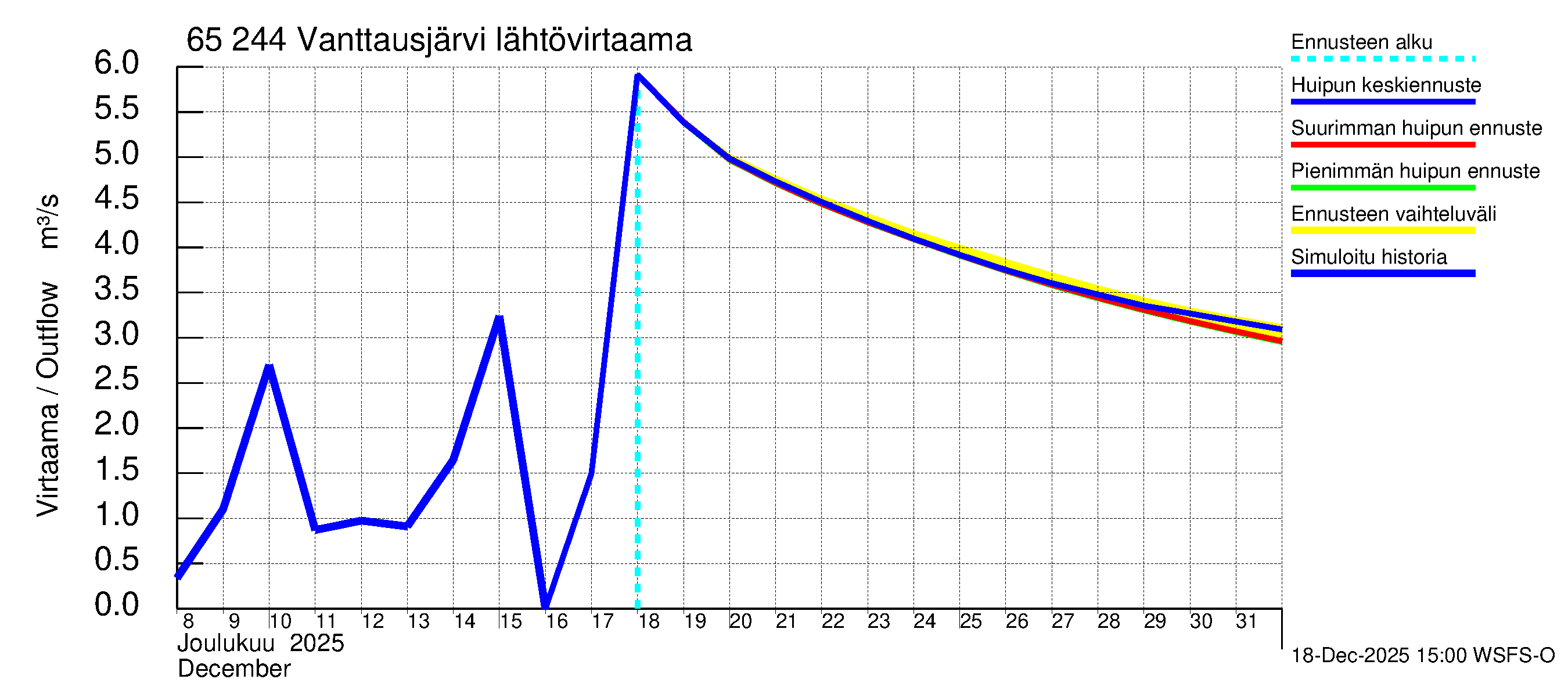 Kemijoen vesistöalue - Vanttausjärvi: Lähtövirtaama / juoksutus - huippujen keski- ja ääriennusteet