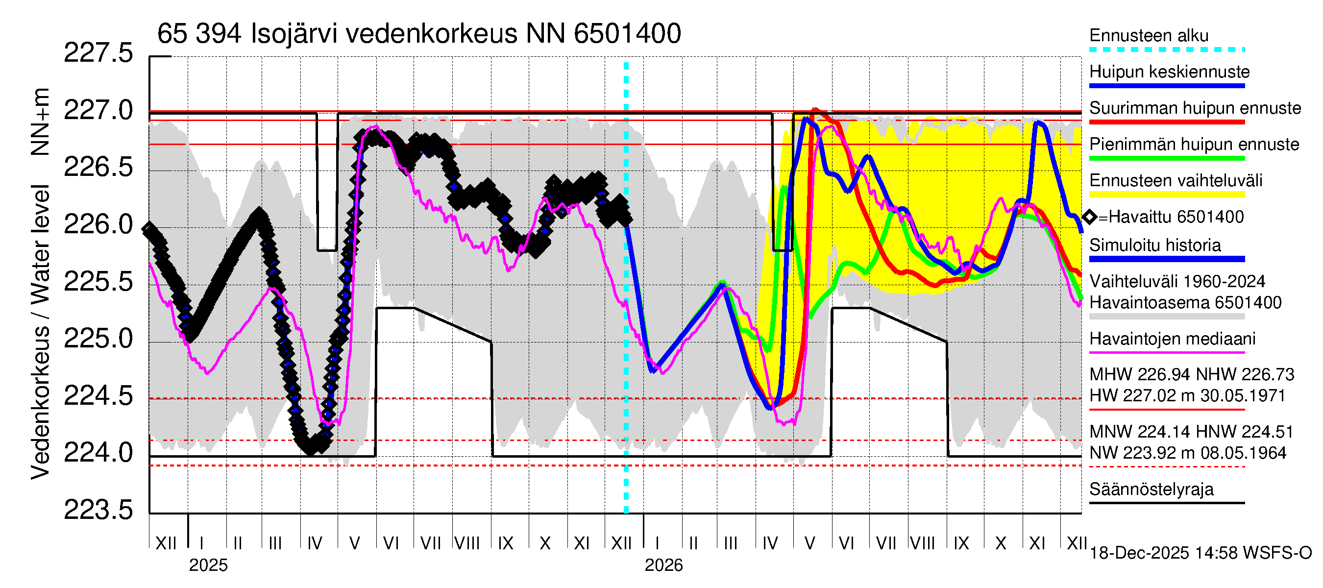 Kemijoen vesistöalue - Isojärvi: Vedenkorkeus - huippujen keski- ja ääriennusteet