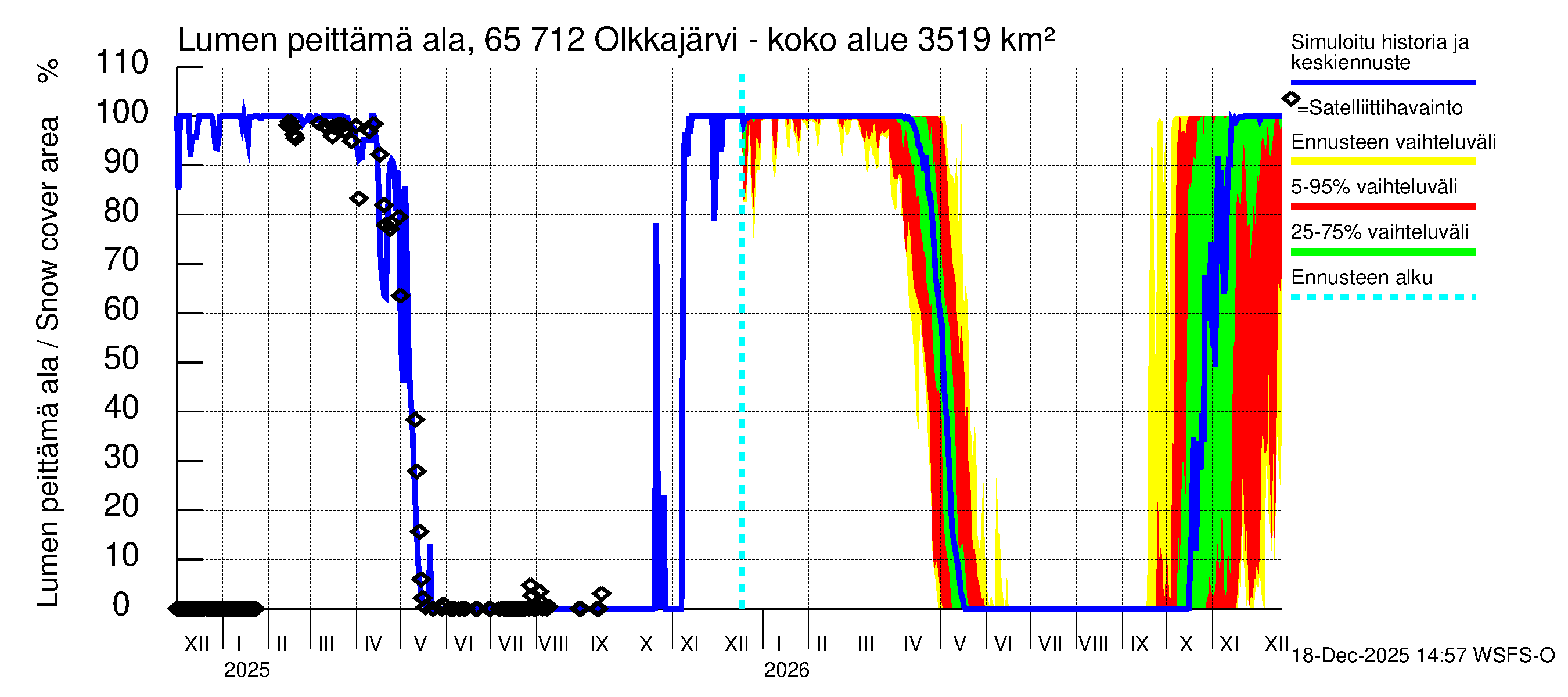 Kemijoen vesistöalue - Olkkajärvi - Matkalampi: Lumen peittämä ala