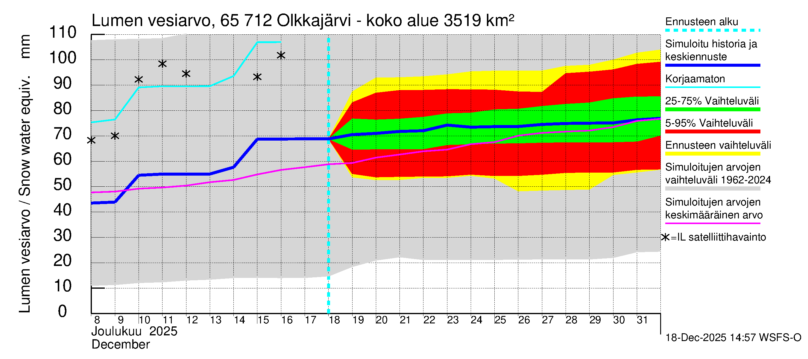 Asiantuntijan työpöytä > Kemijoen vesistöalue > Olkkajärvi - Matkalampi > Koko valuma-alue / Lähivaluma-alue Ennustekuvien tulkinta
