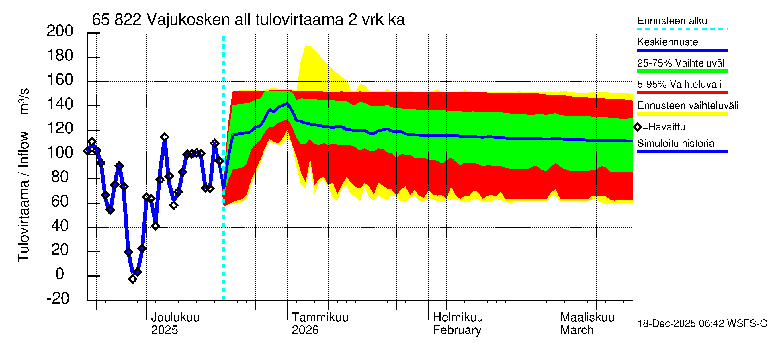 Kemijoen vesistöalue - Vajukosken allas: Tulovirtaama (usean vuorokauden liukuva keskiarvo) - jakaumaennuste