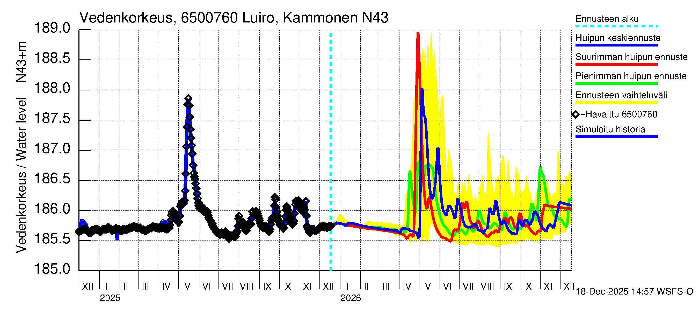 Kemijoen vesistöalue - Luiro Kammonen: Vedenkorkeus - huippujen keski- ja ääriennusteet