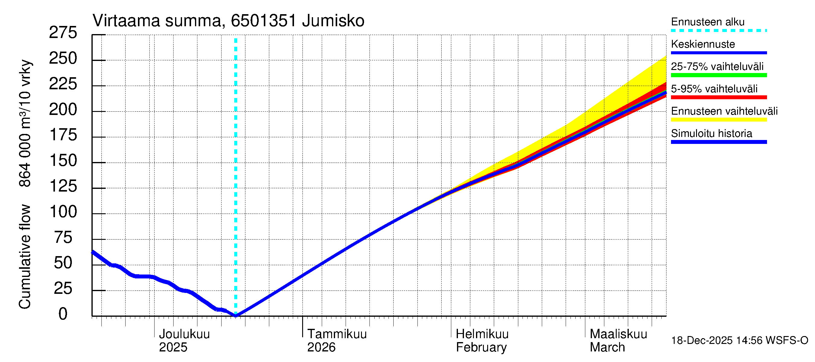 Kemijoen vesistöalue - Jumisko: Virtaama / juoksutus - jakaumaennuste