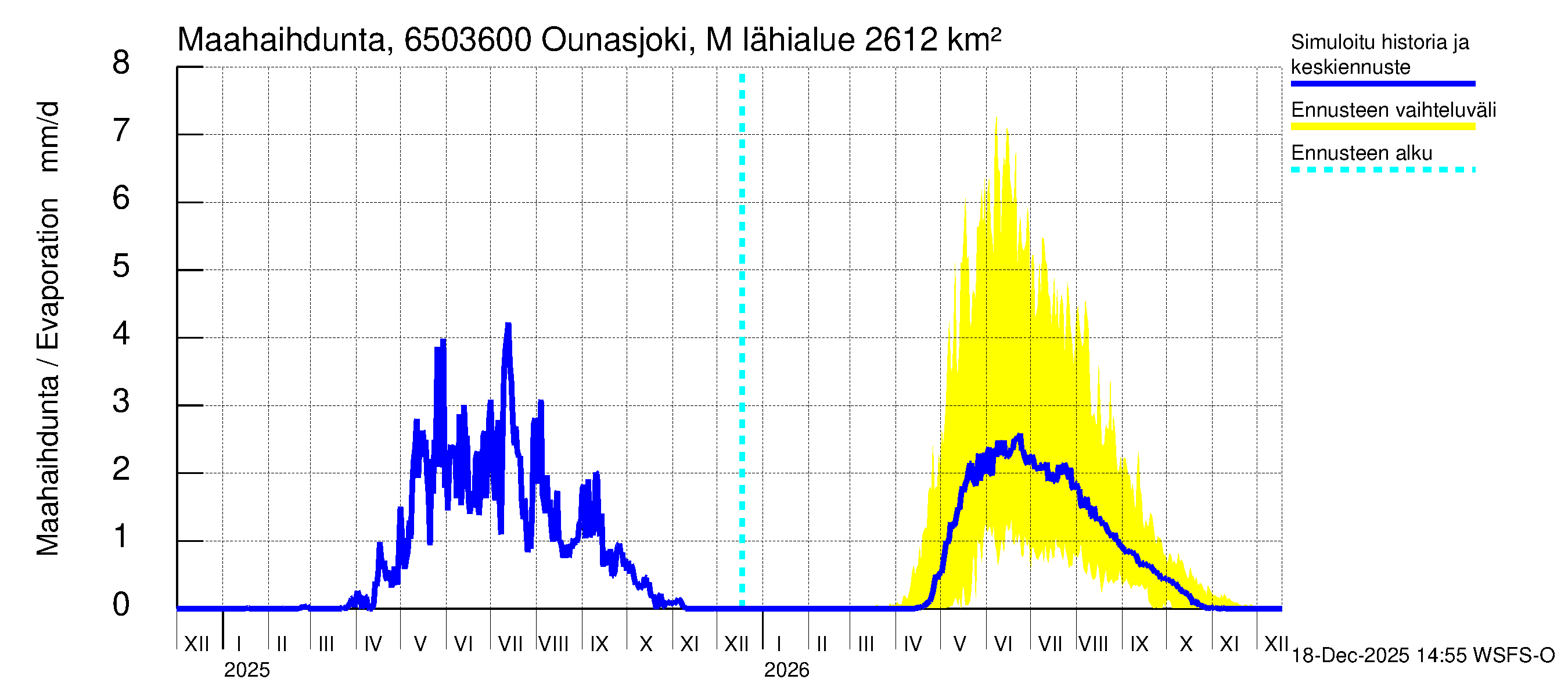 Kemijoen vesistöalue - Ounasjoki Marraskoski: Haihdunta maa-alueelta - summa