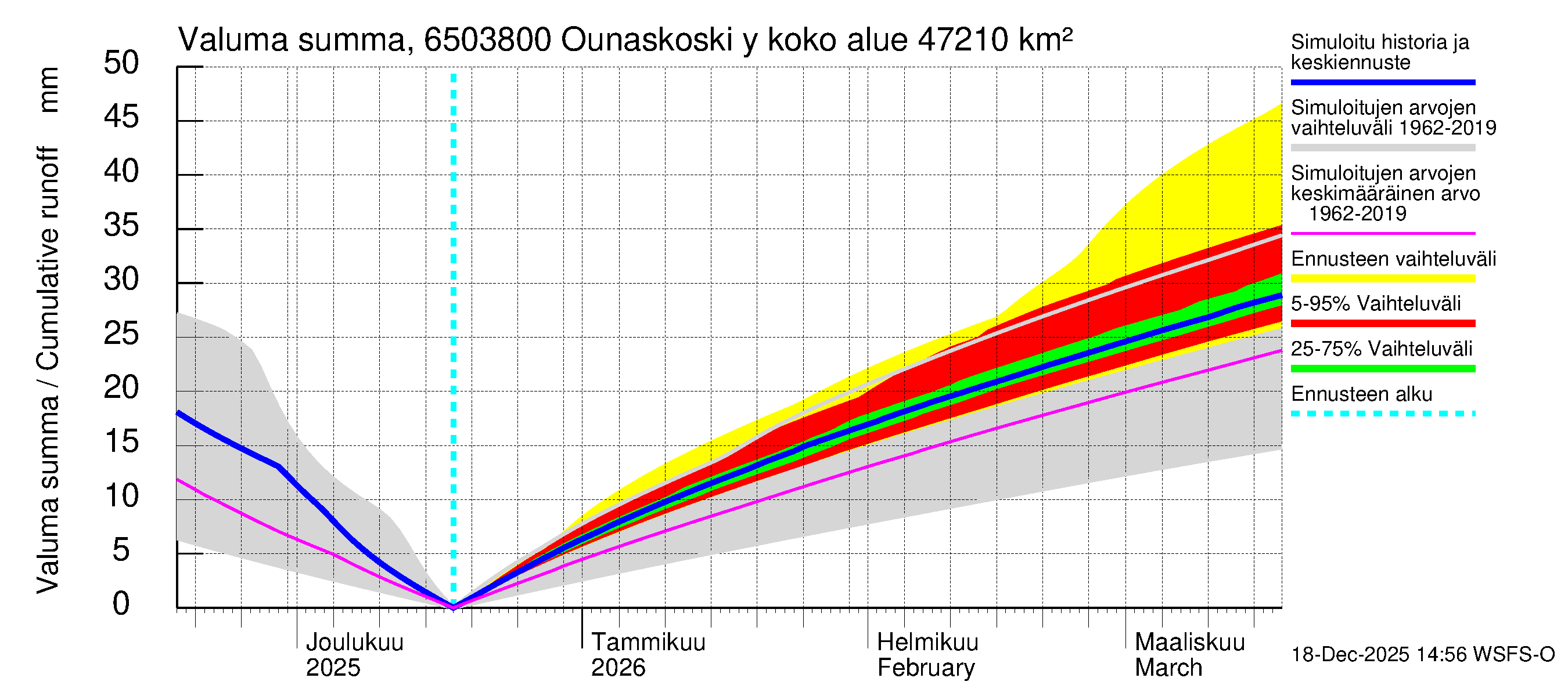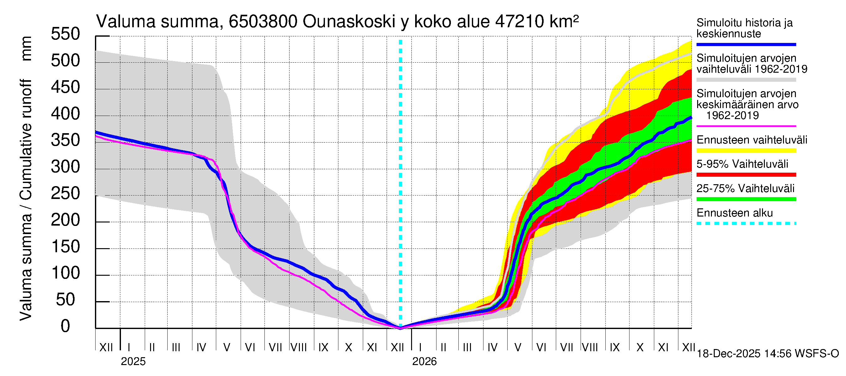 Kemijoen vesistöalue - Rovaniemi Ounaskoski ylä, Lainas: Virtaama / juoksutus - jakaumaennuste