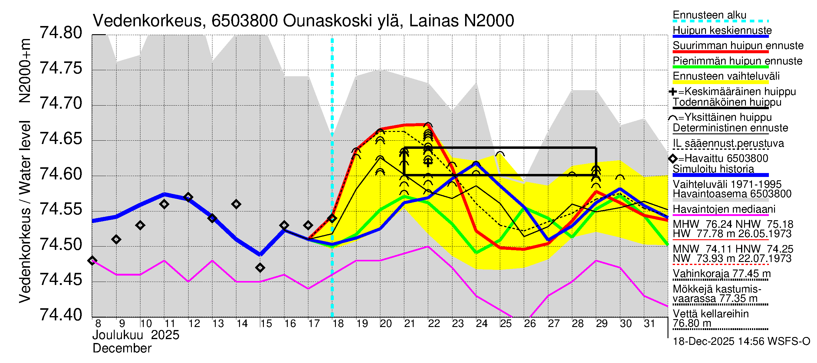 Kemijoen vesistöalue - Rovaniemi Ounaskoski ylä, Lainas: Vedenkorkeus - huippujen keski- ja ääriennusteet