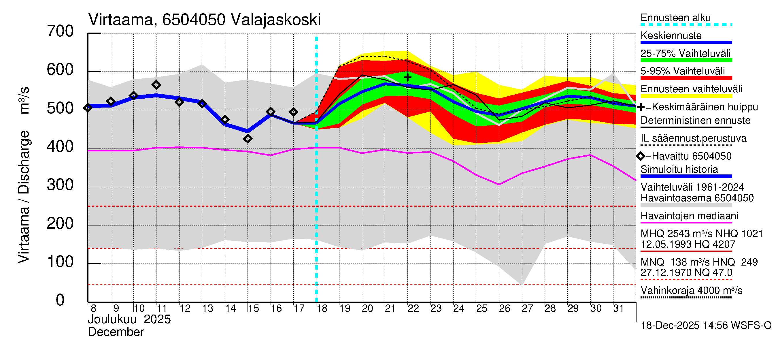 Kemijoen vesistöalue - Valajaskoski: Virtaama / juoksutus - huippujen keski- ja ääriennusteet