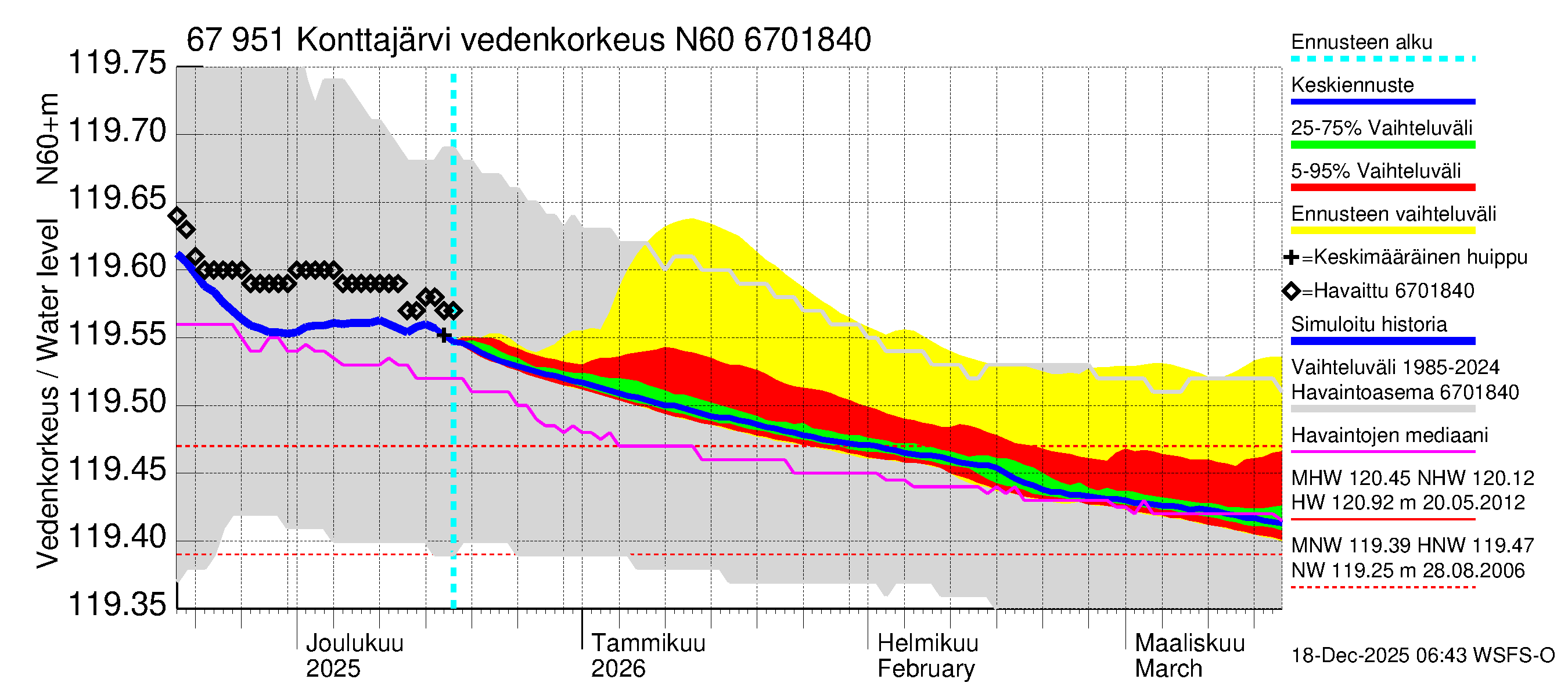 Tornionjoen vesistöalue - Konttajärvi: Vedenkorkeus - jakaumaennuste