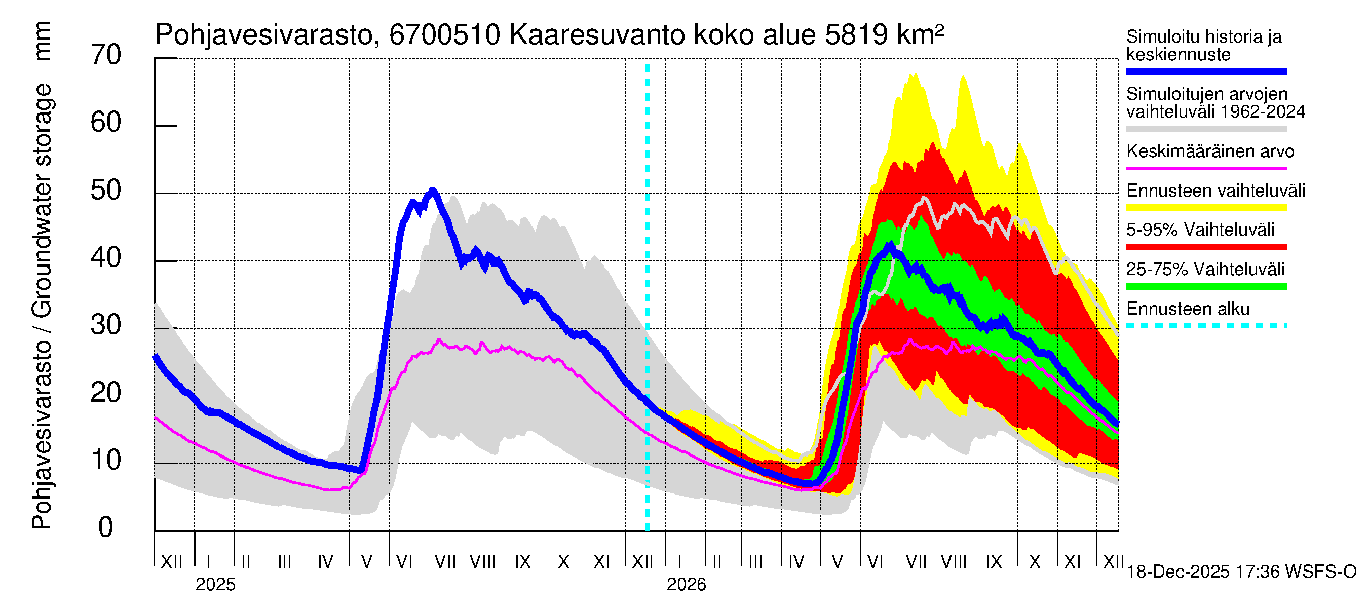 Tornionjoen vesistöalue - Muonionjoki Kaaresuvanto: Vedenkorkeus - jakaumaennuste