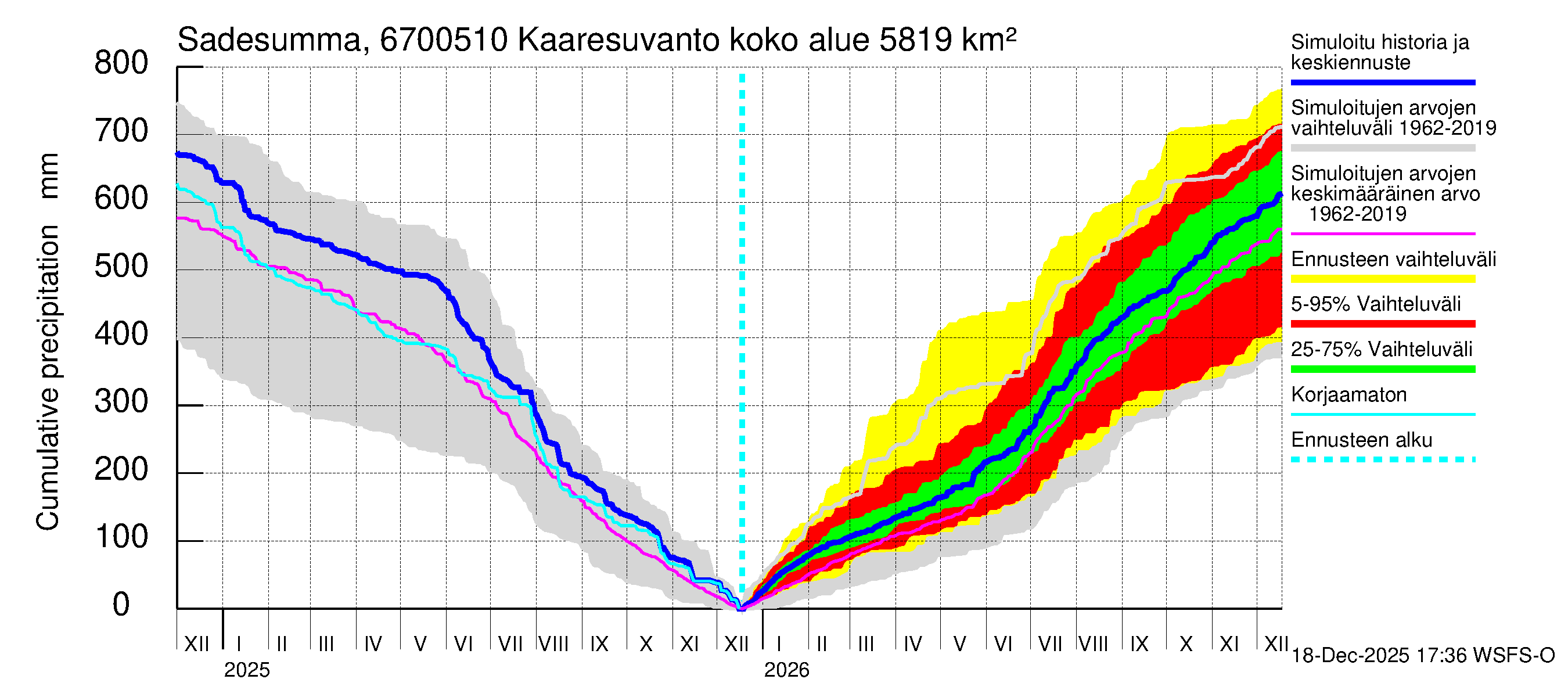 Tornionjoen vesistöalue - Muonionjoki Kaaresuvanto: Virtaama / juoksutus - jakaumaennuste