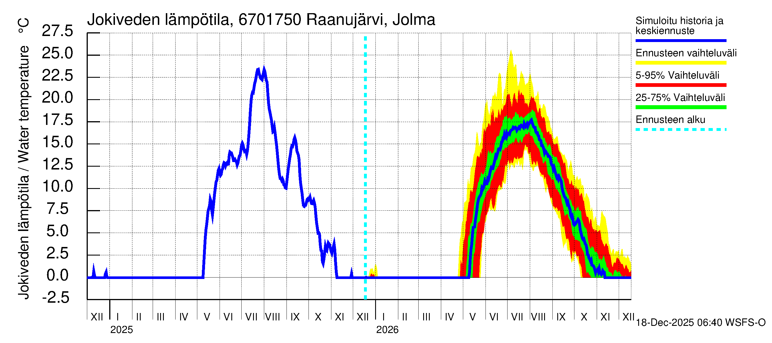 Tornionjoen vesistöalue - Raanujärvi Jolma: Jokiveden lämpötila