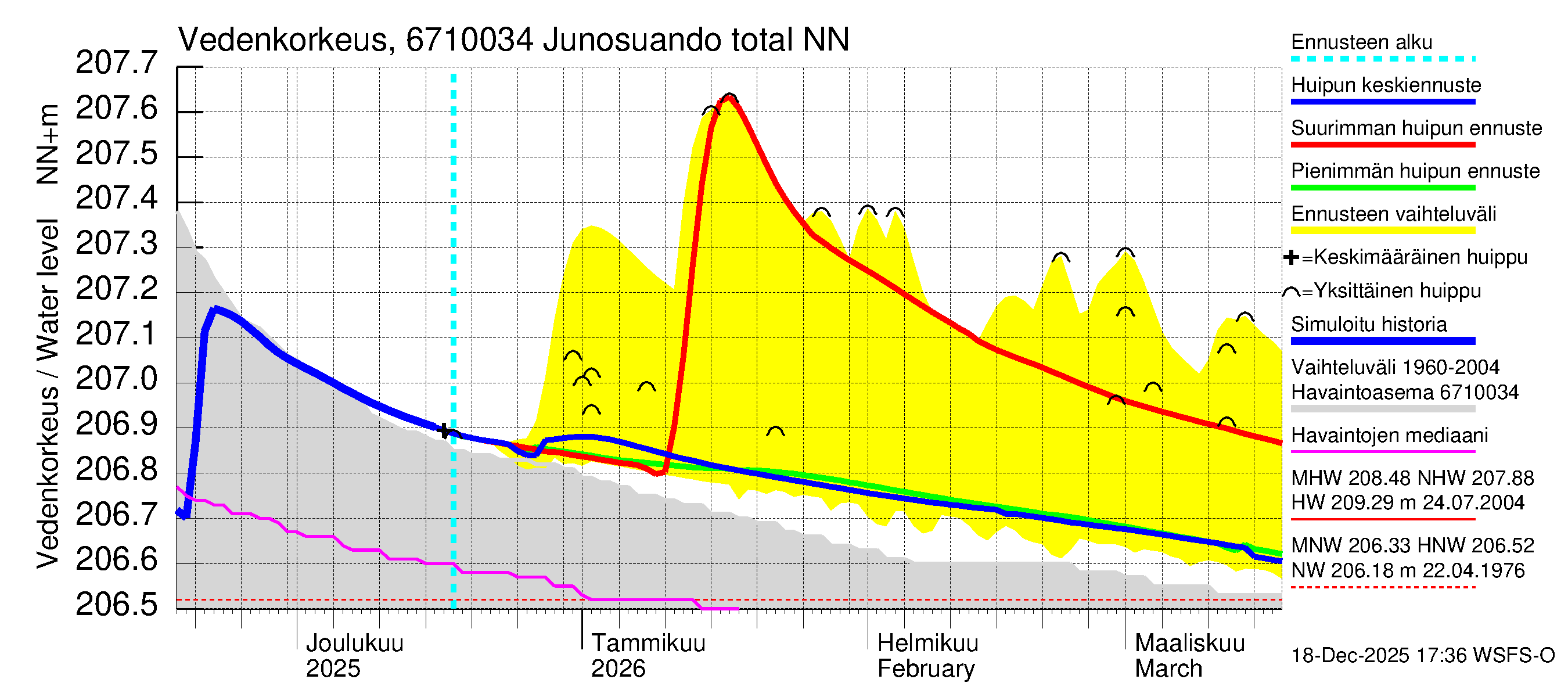 Tornionjoen vesistöalue - Junosuando total: Vedenkorkeus - huippujen keski- ja ääriennusteet