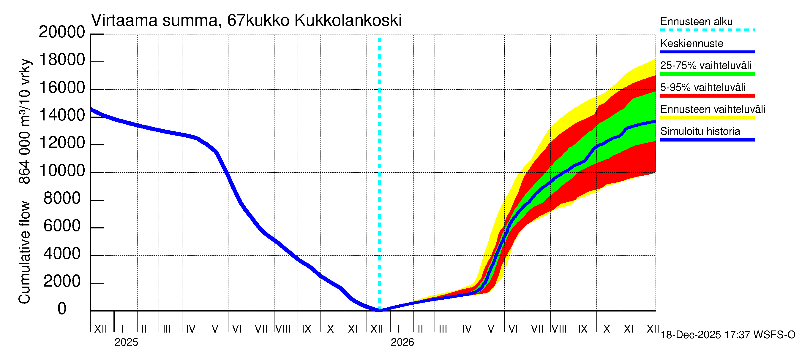 Tornionjoen vesistöalue - Kukkolankoski: Virtaama / juoksutus - jakaumaennuste